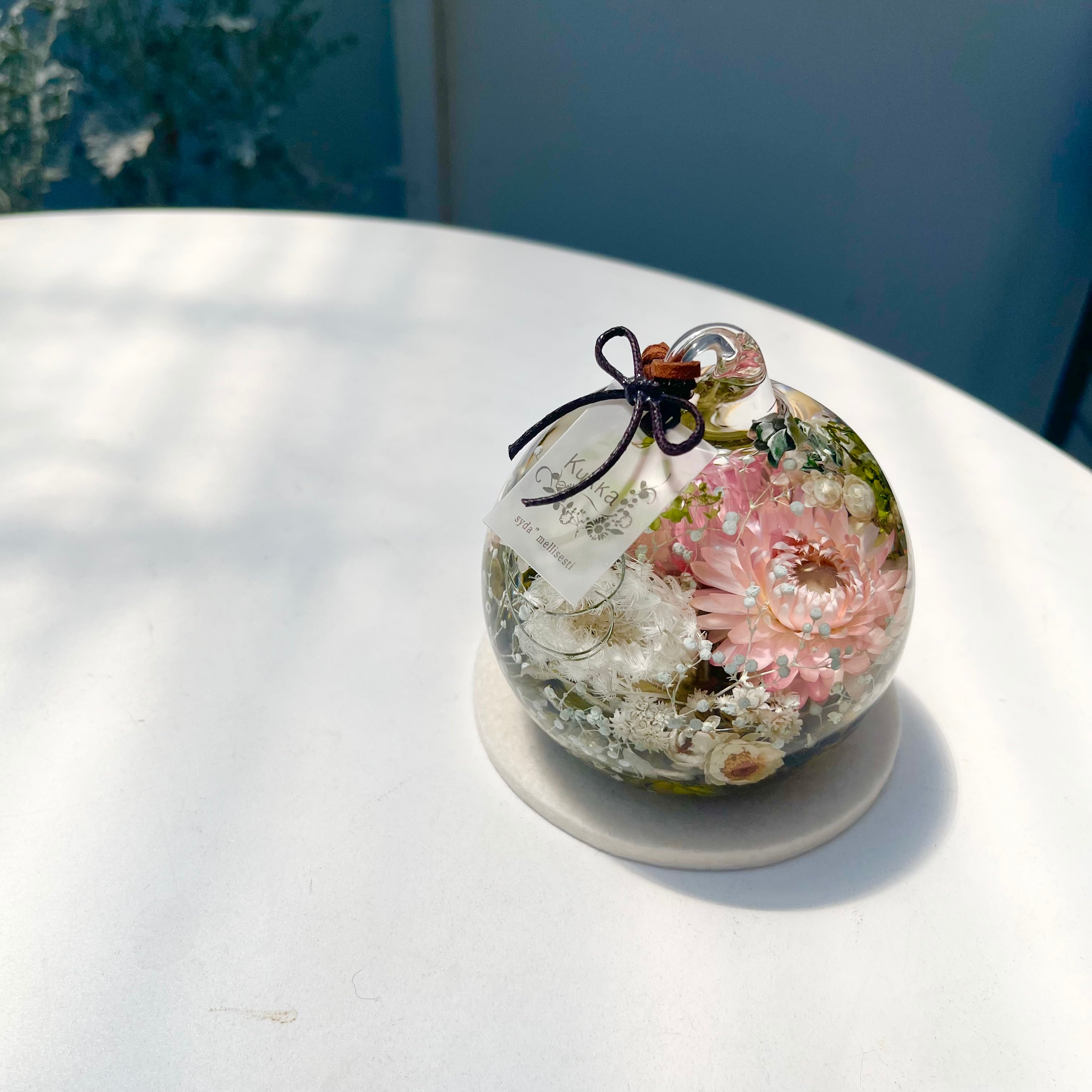 まんまるのガラスの世界に花咲く野原をそのまま入れたようなイメージで、手を抜かず丁寧に心を込めてお作りしています。