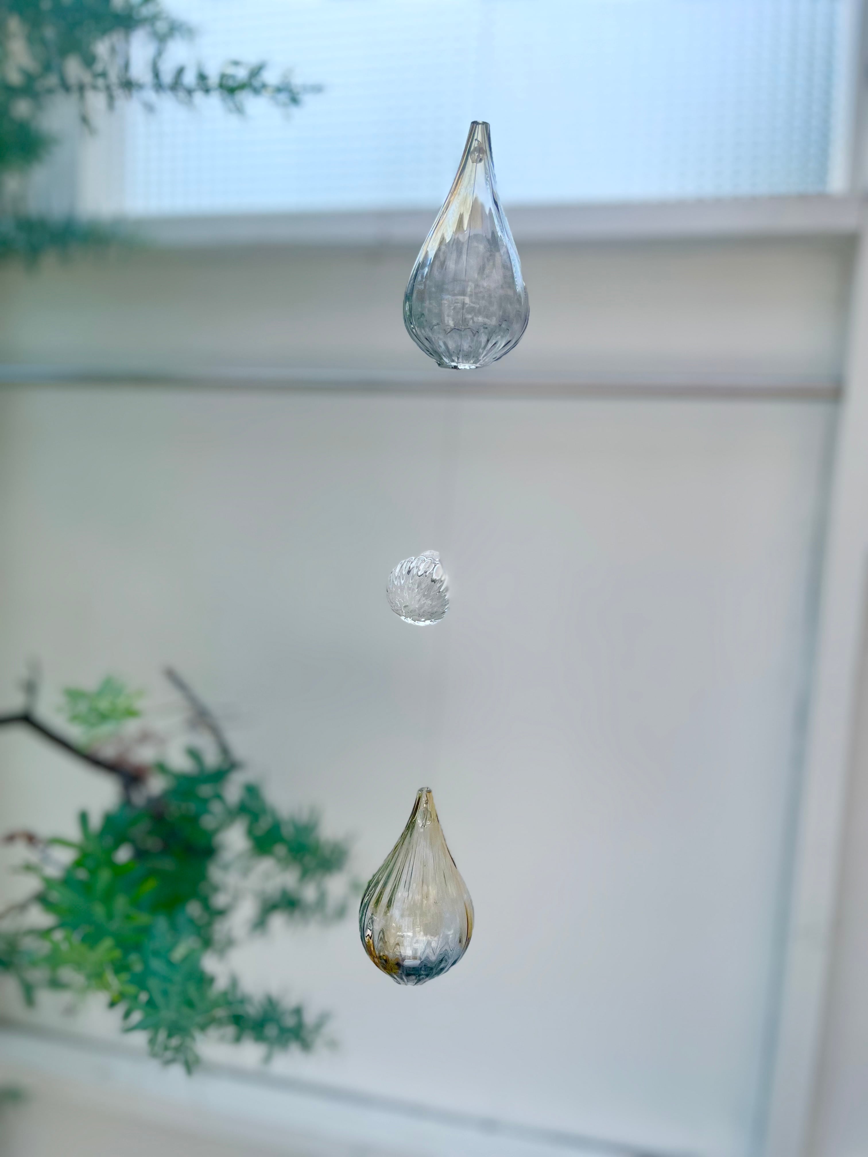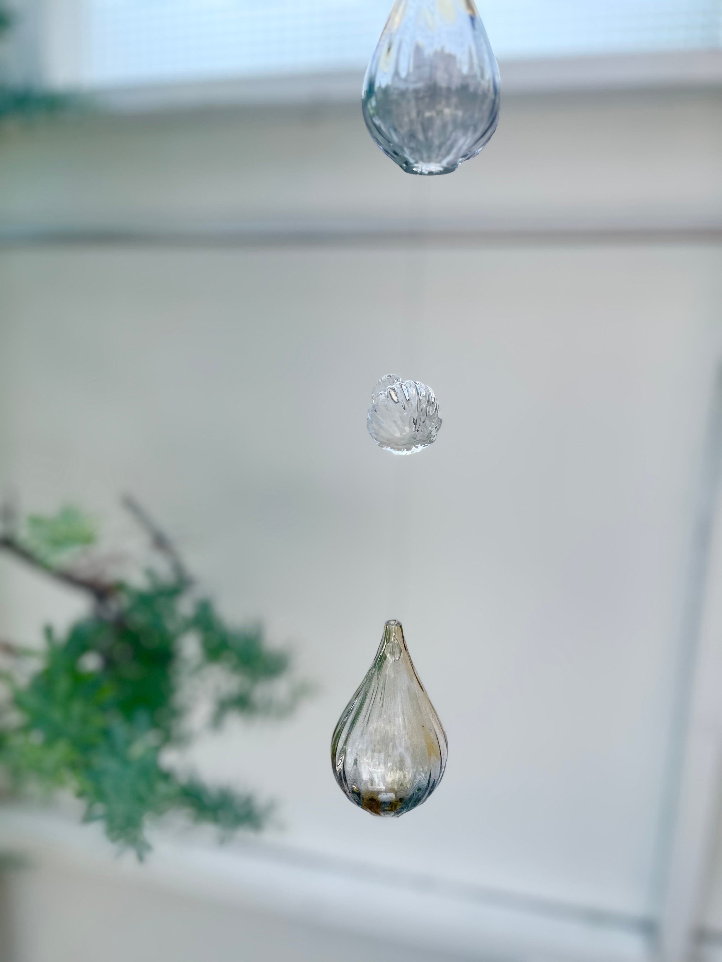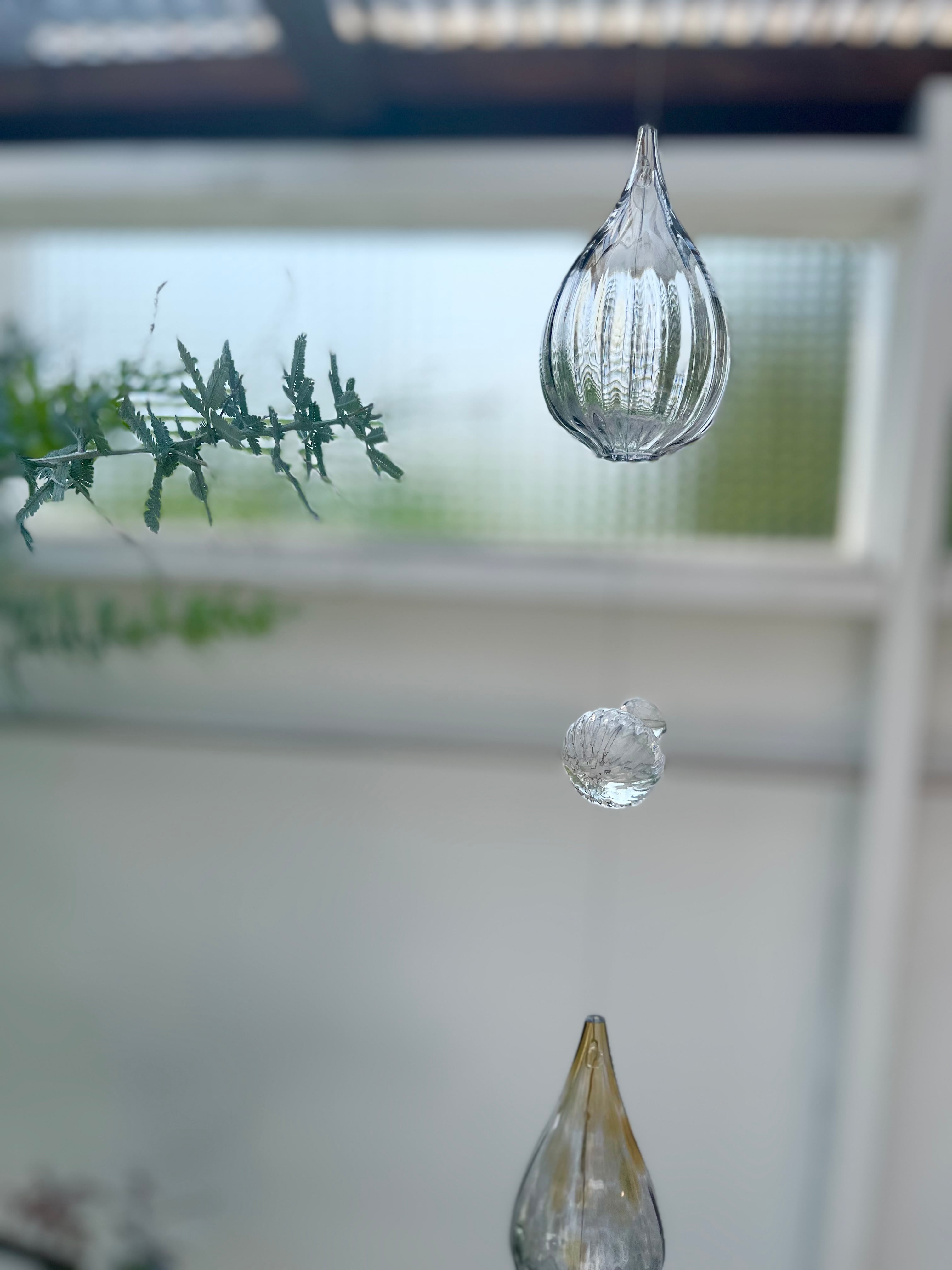 手仕事の温もりが感じられるガラスのモビール は、見た目の美しさだけでなく、ゆらゆら揺れる動きに癒されます。