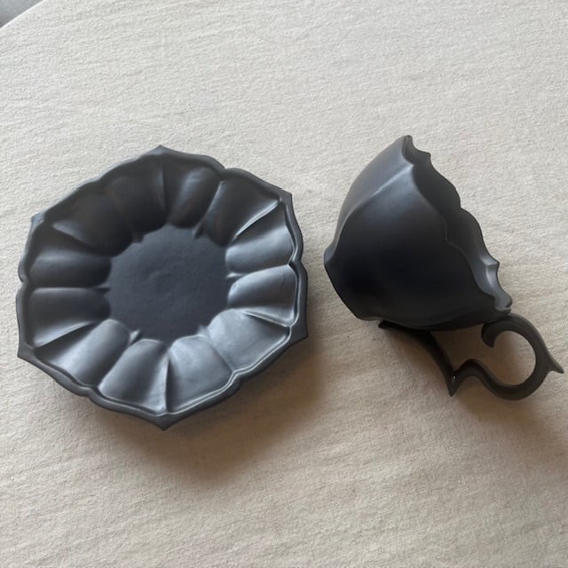臼杵焼 USUKIYAKI 稜花ティーカップ&ソーサー ブラック USUKIYAKI研究所