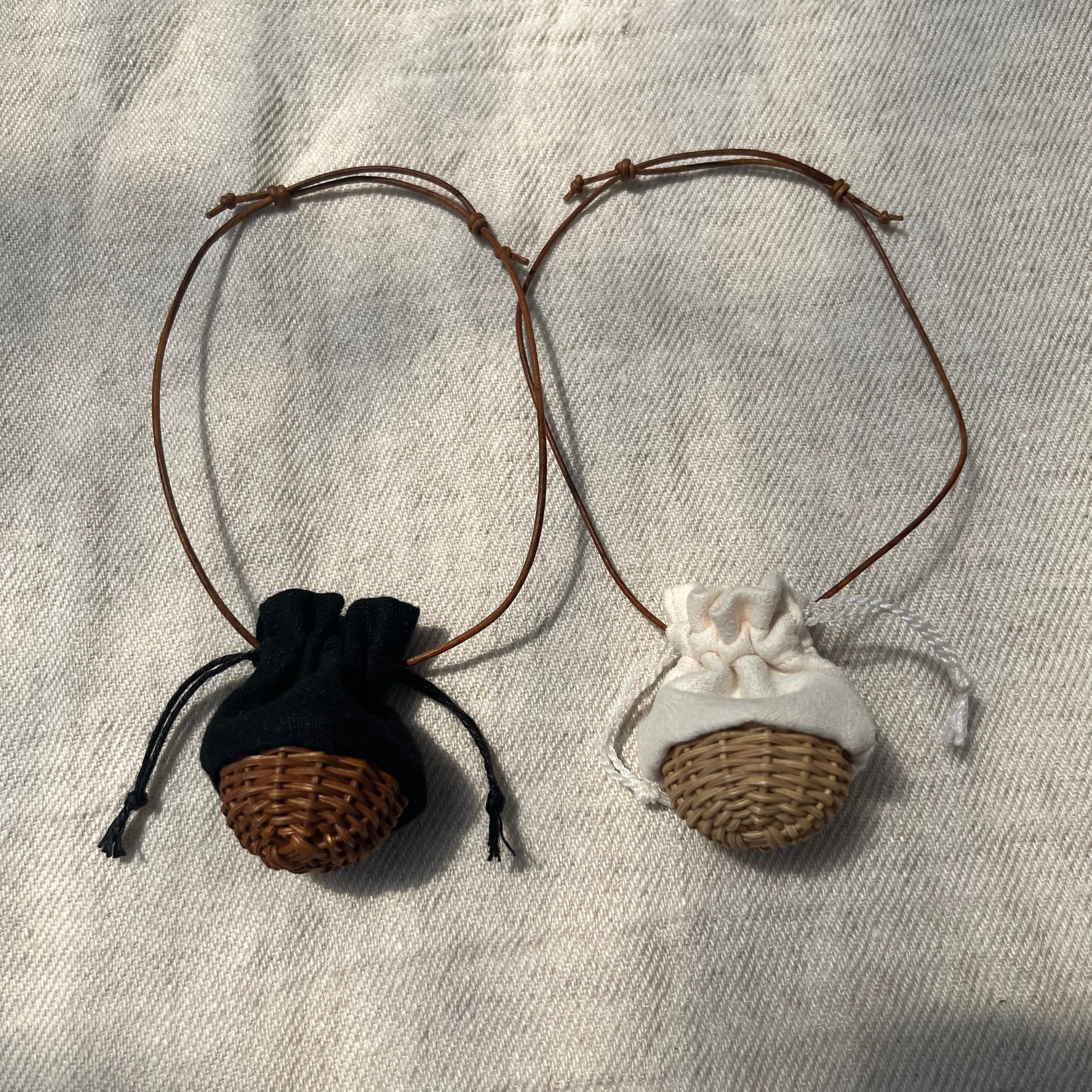 サイズ かごの直径30ミリ、巾着布部分含む直径30、高さ40ミリ