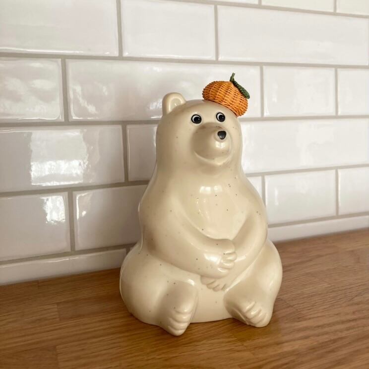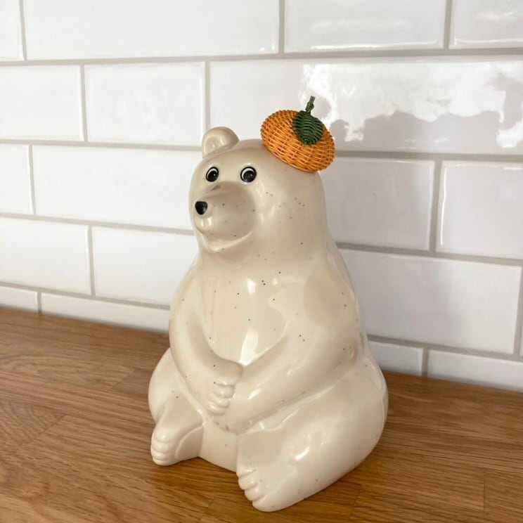 かわいいデザインの帽子を合わせると、しろくま貯金箱がさらに可愛く変身します。