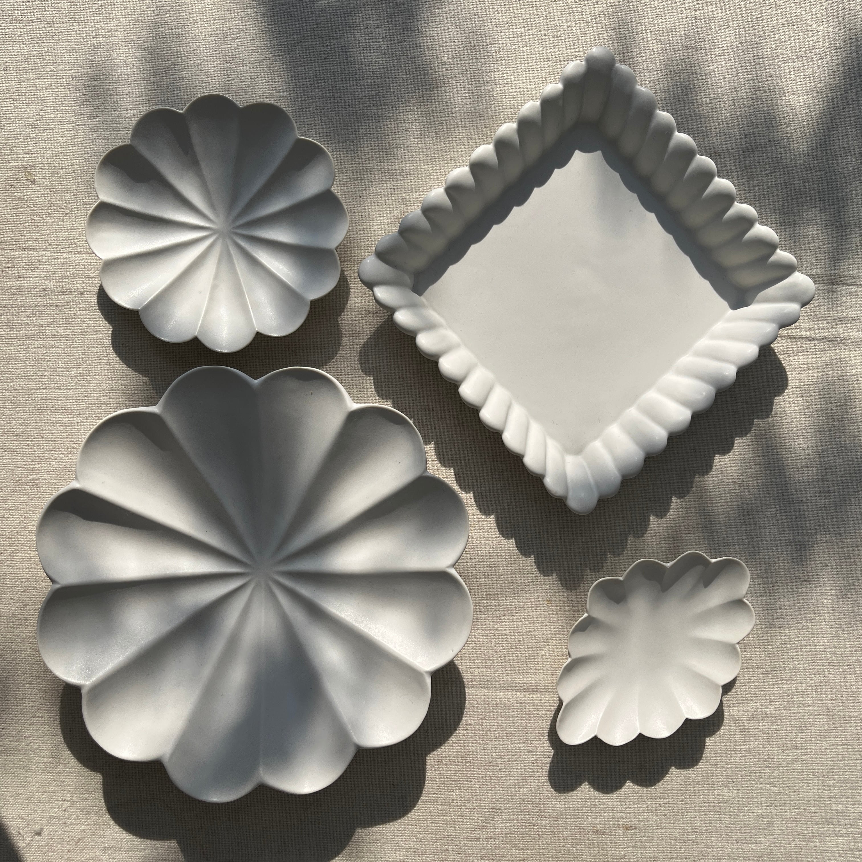 臼杵焼 USUKIYAKI 輪花菱豆皿 ホワイト USUKIYAKI研究所