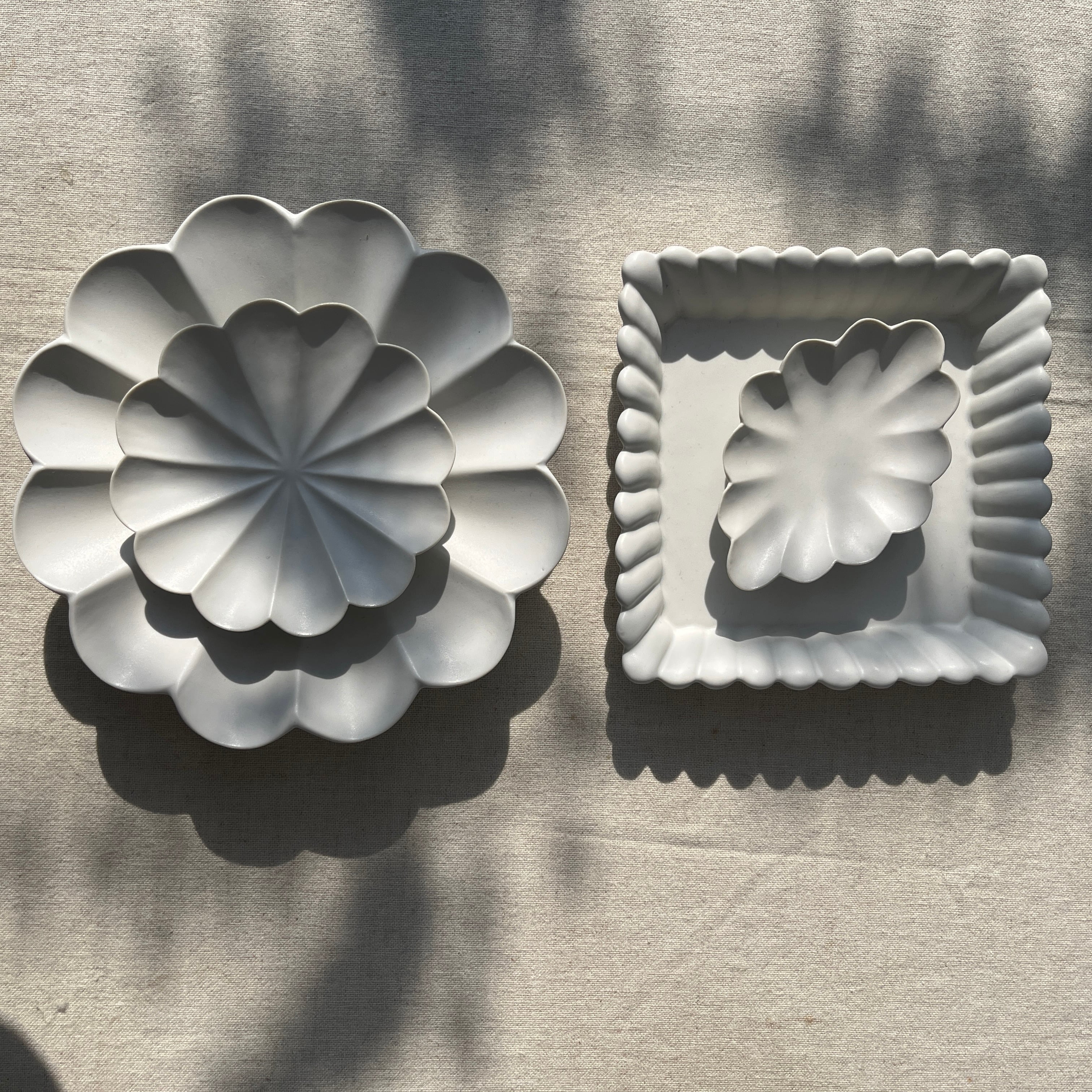輪花十二弁浅鉢や輪花十二弁皿 SSとセットで使うと、大小の花が咲いているようなコーディネートができます。