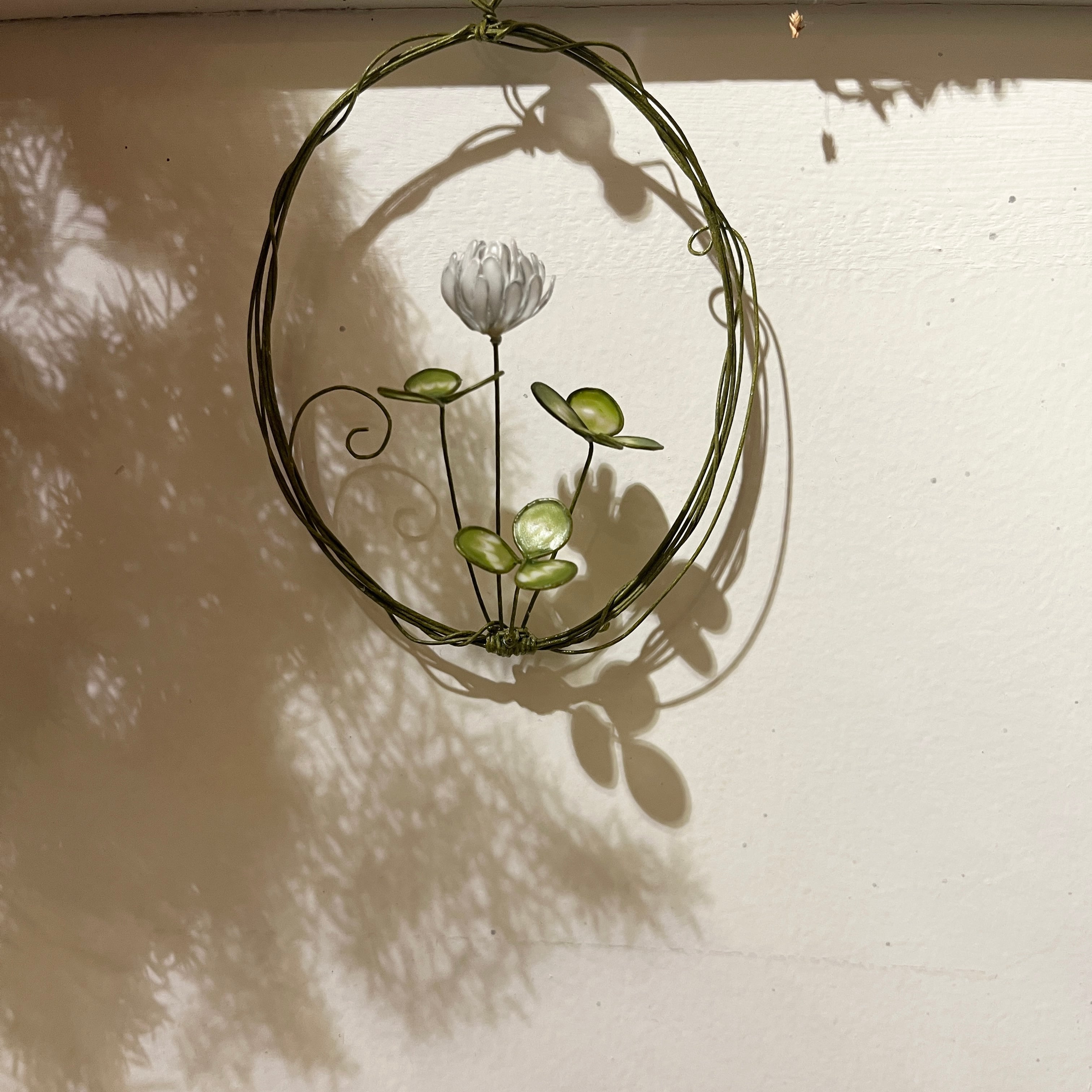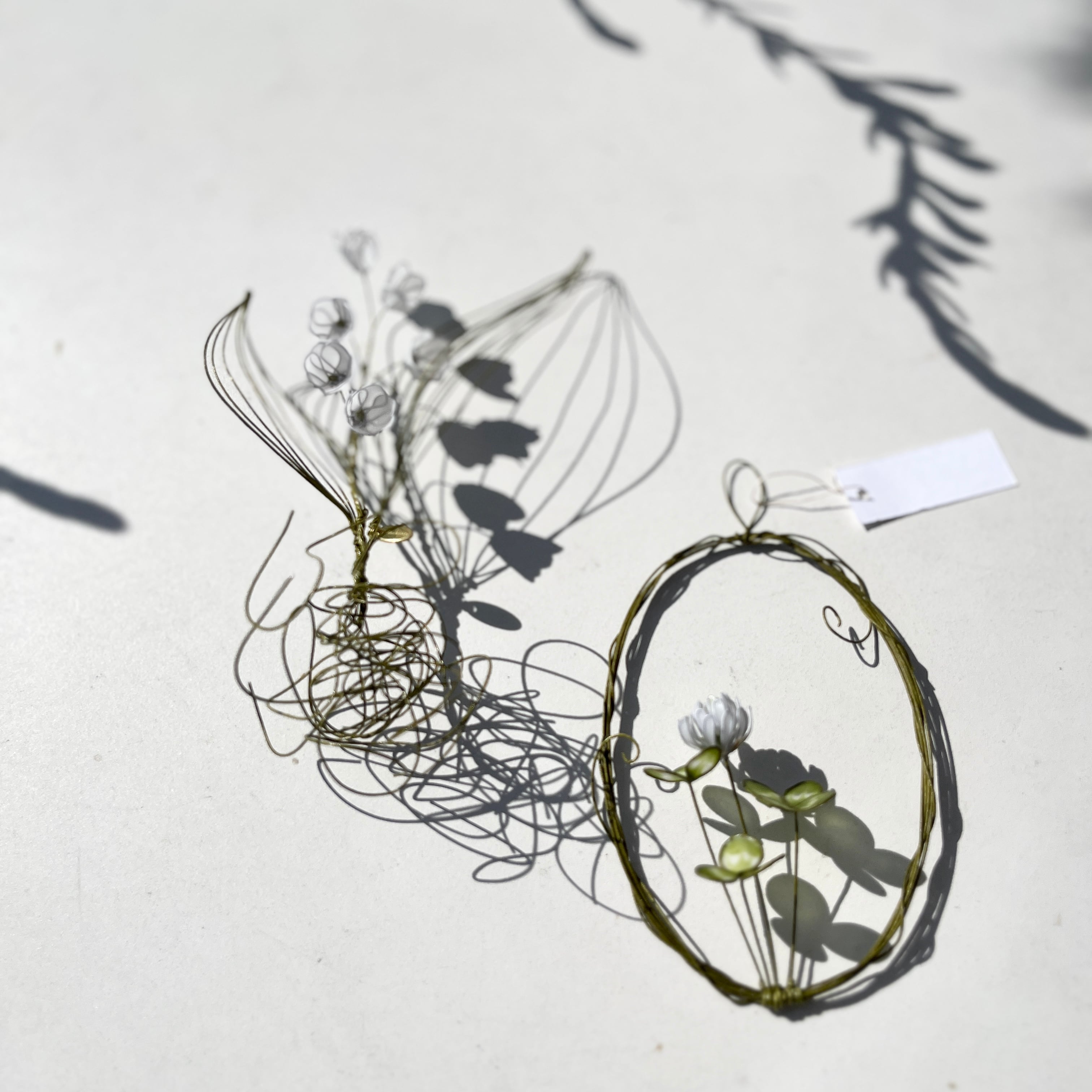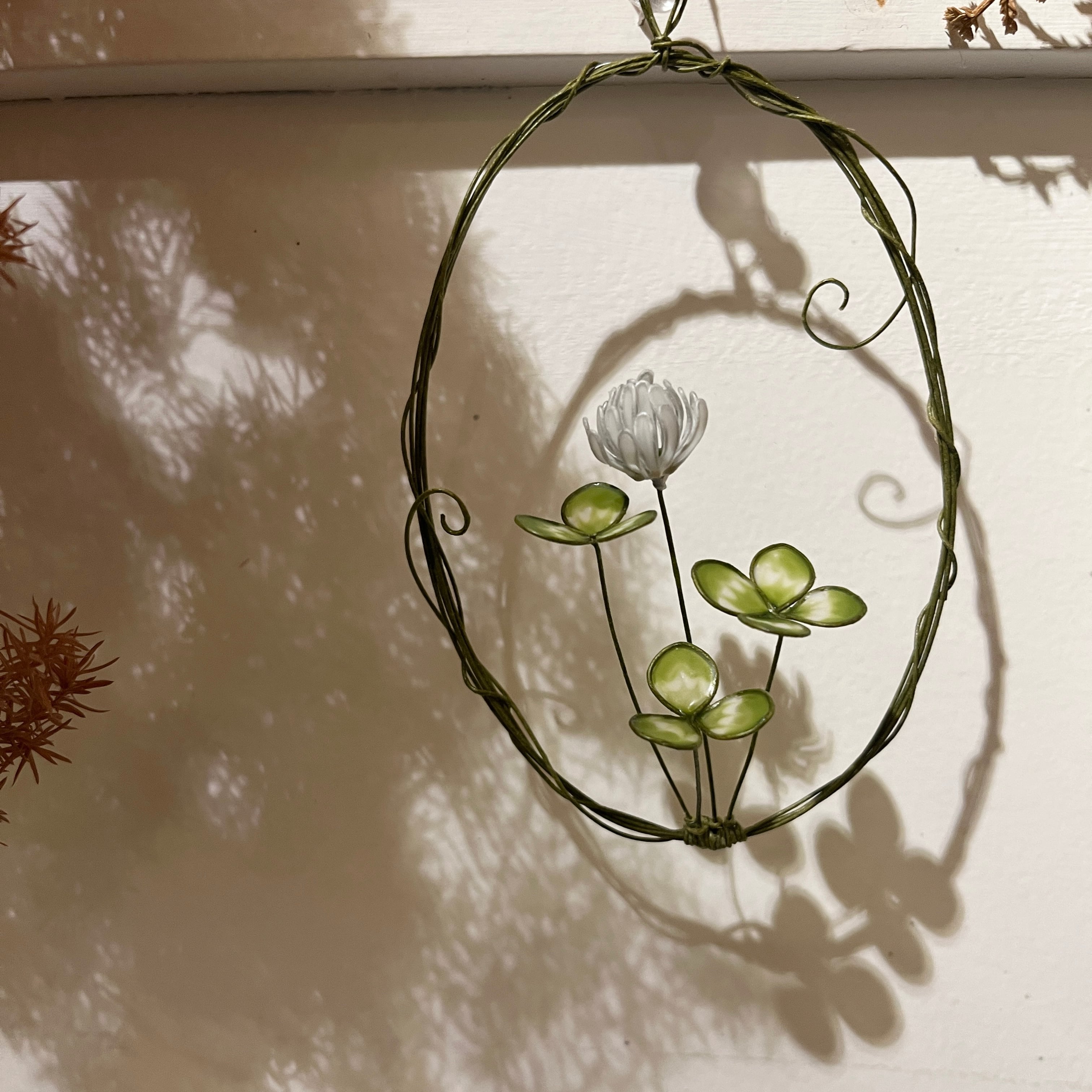 広島在住の作家 atelier karin さんのシロツメクサとクローバーがリースになりました。