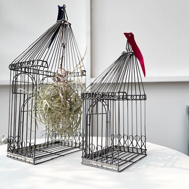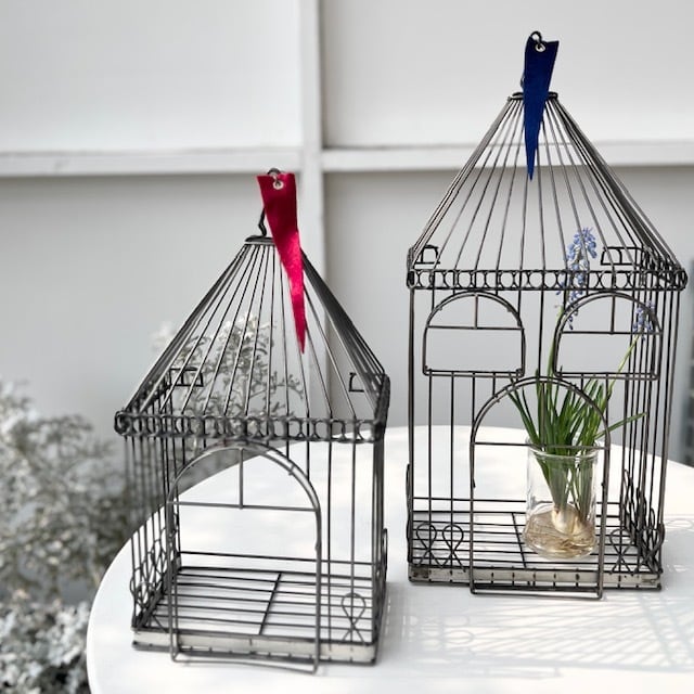 壁面に取り付けたり、棚の上に置く方法の2タイプの飾り方ができるワイヤーラックです。