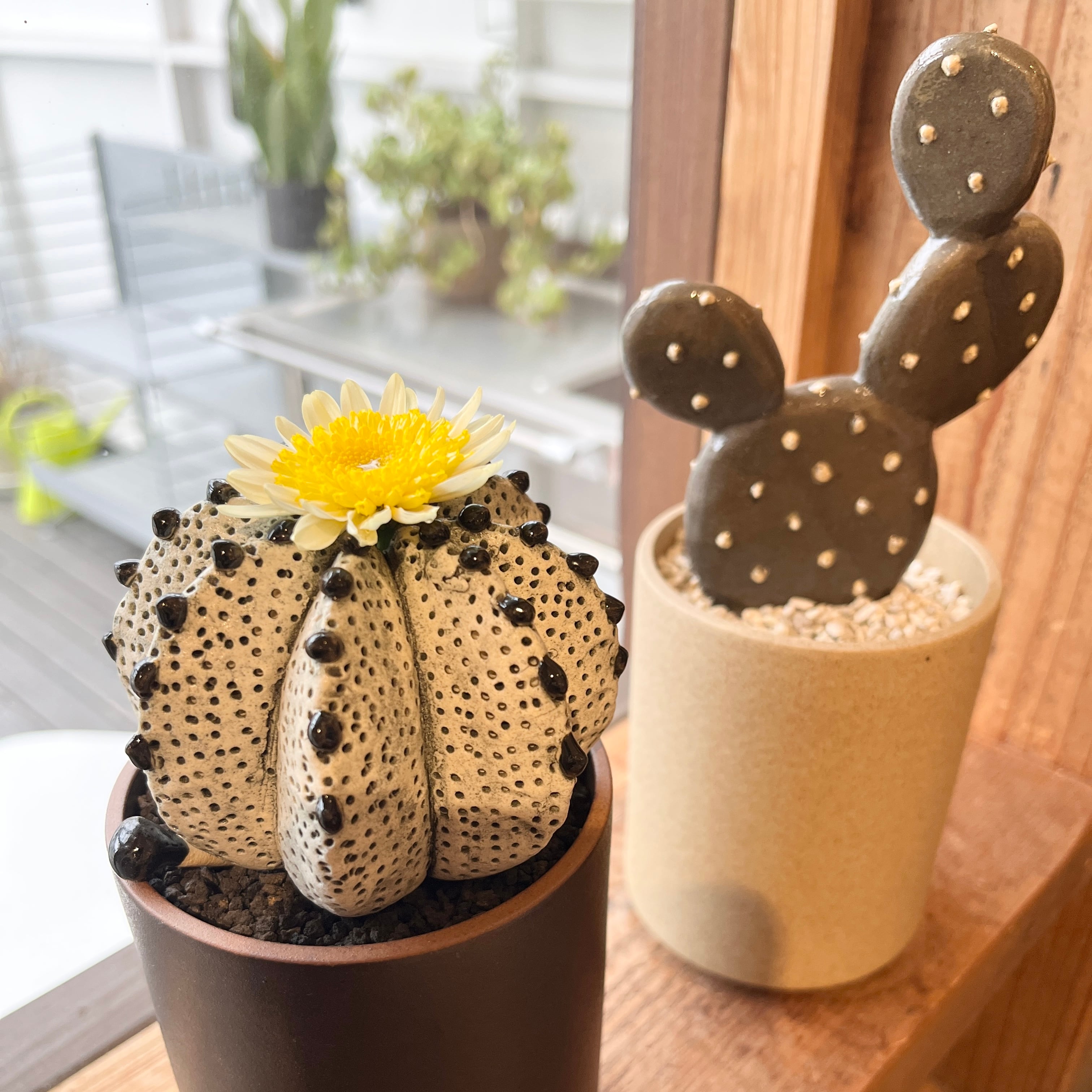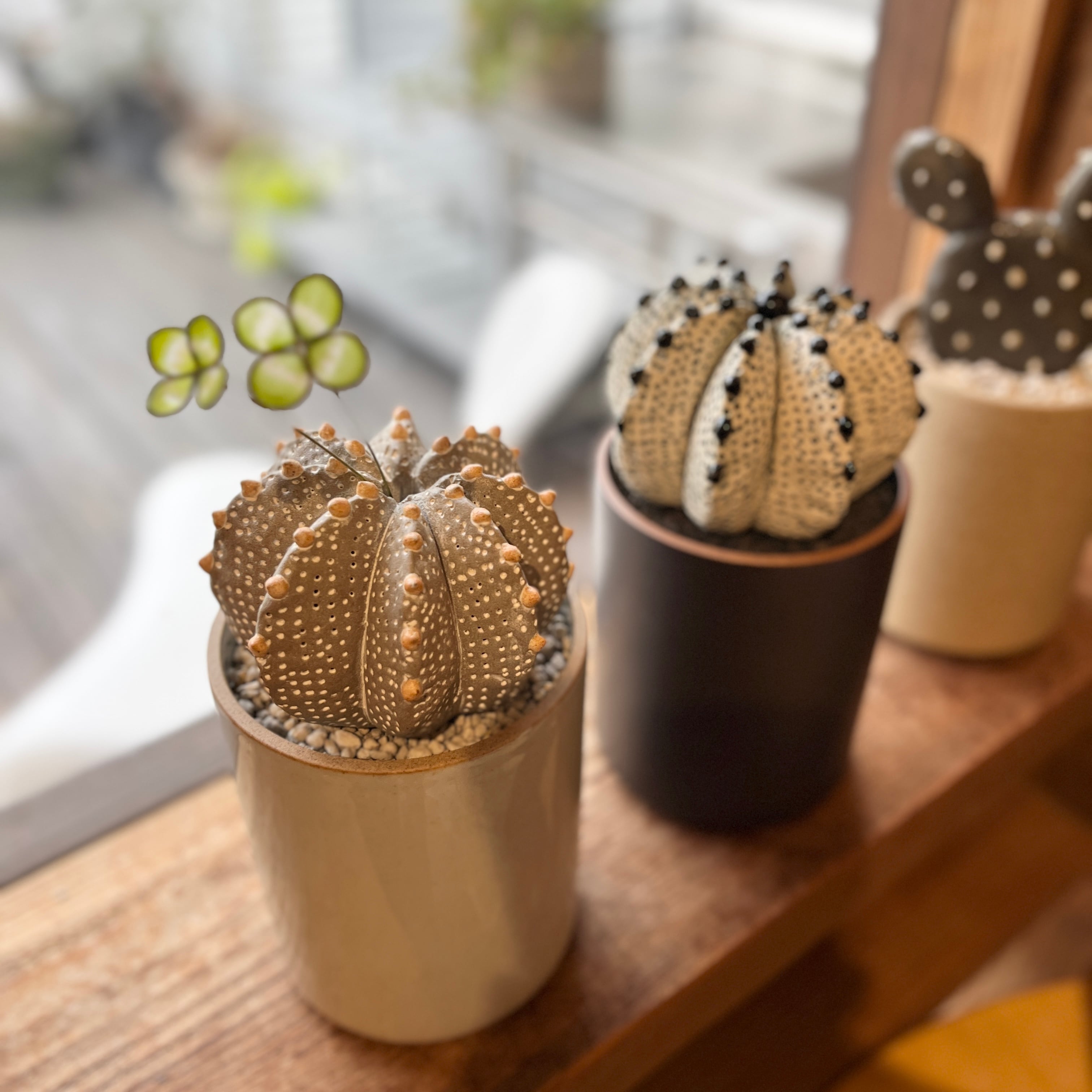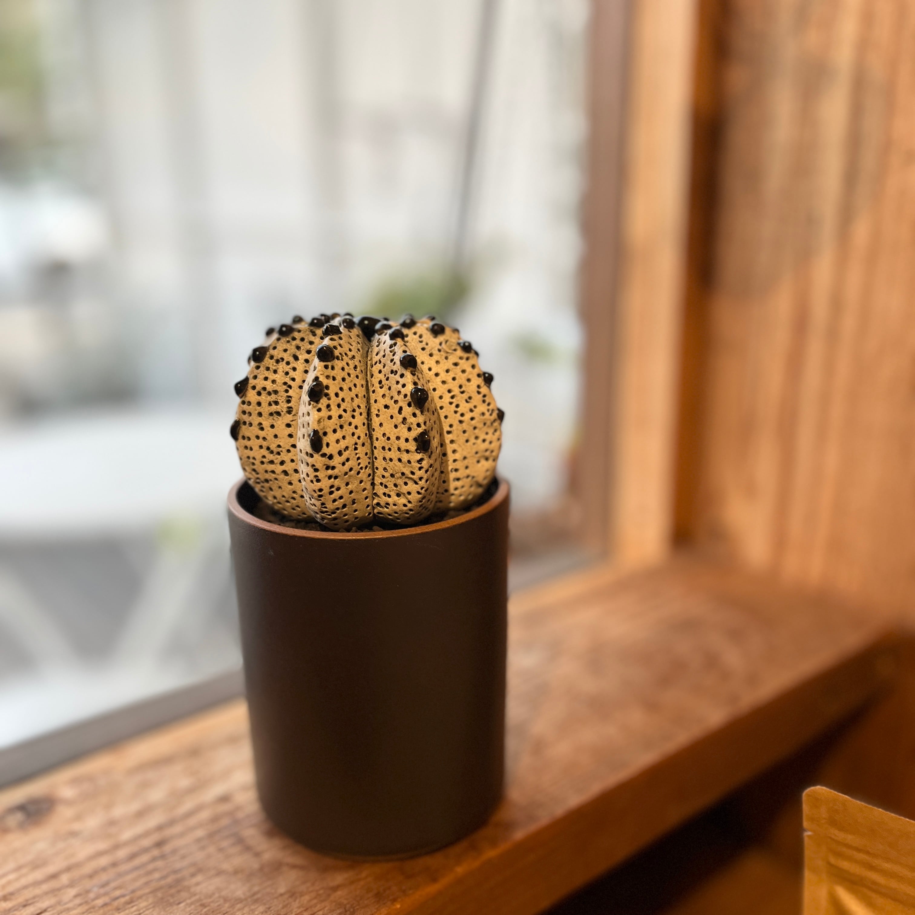 本物のディティールを再現しつつ、デフォルメも加えながらインテリアオブジェとして映えるように工夫しながら、制作されています。植物をそのまま模倣するのではなく、素材である土や釉薬の性質を生かしたアート性の高い仕上がりなるよう、細かいところにまでこだわりつつ、遊び心も加わった植物オブジェです。