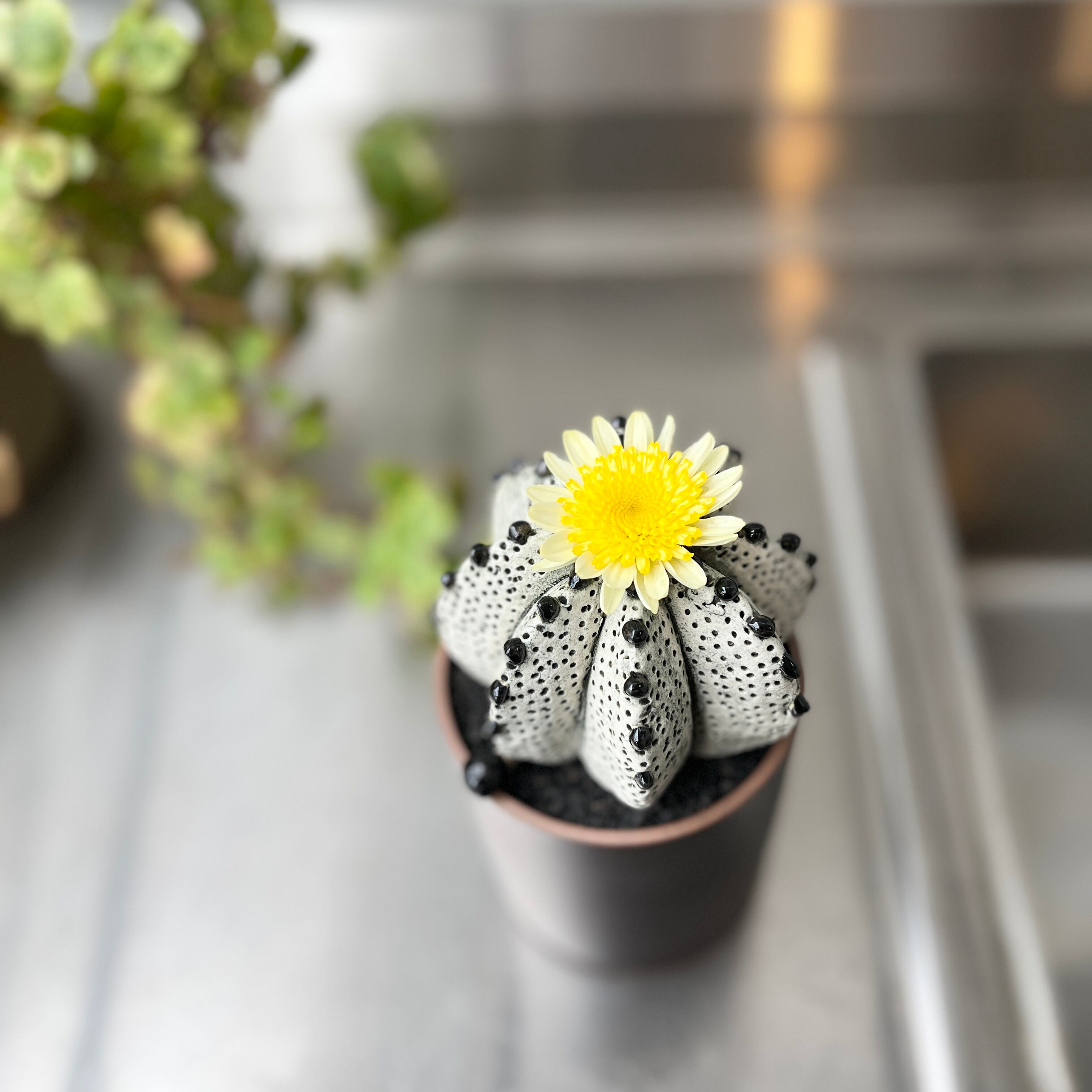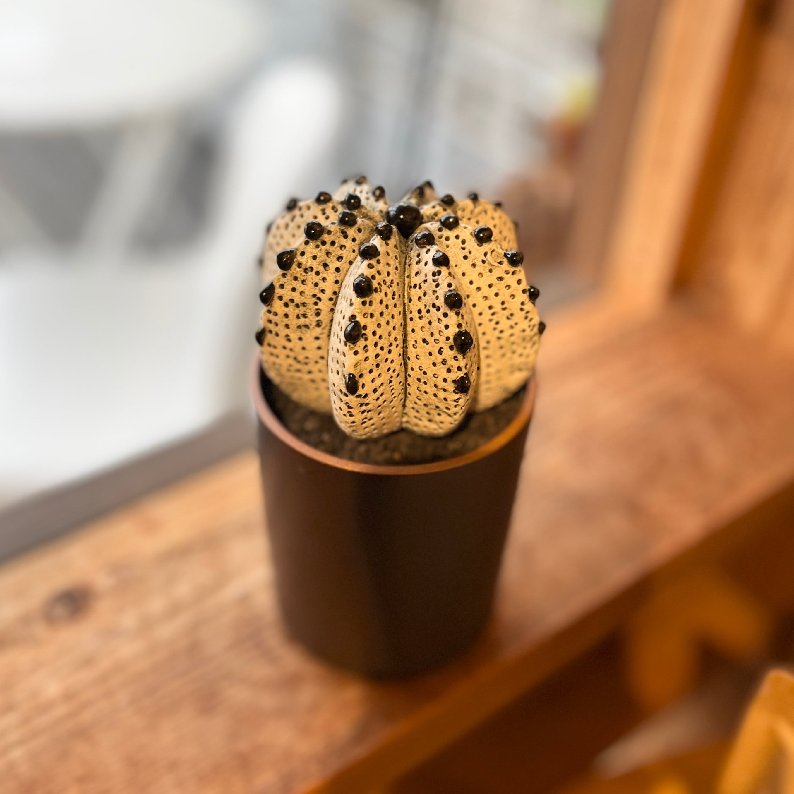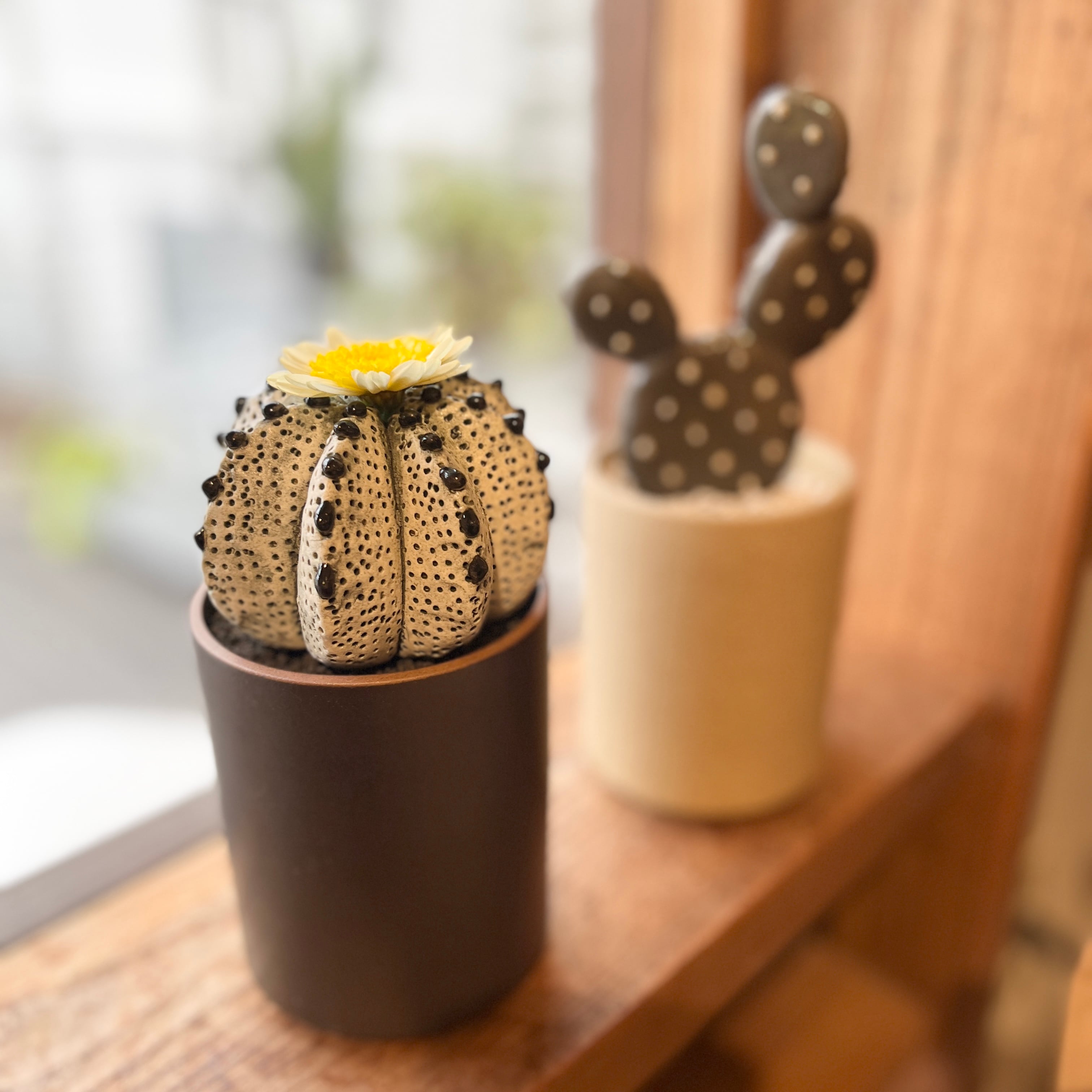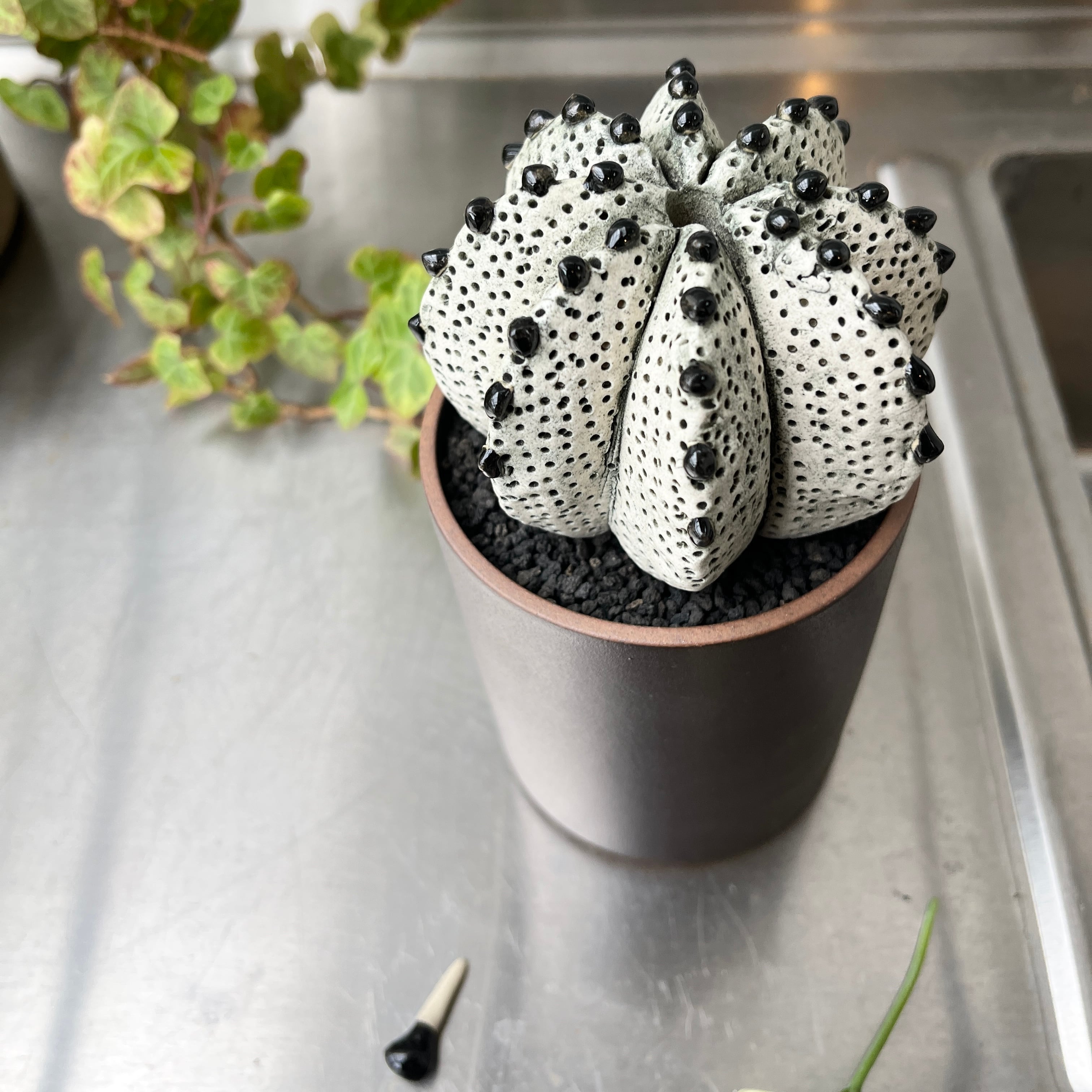 本物のディティールを再現しつつ、デフォルメも加えながらインテリアオブジェとして映えるように工夫しながら、制作されています。植物をそのまま模倣するのではなく、素材である土や釉薬の性質を生かしたアート性の高い仕上がりなるよう、細かいところにまでこだわりつつ、遊び心も加わった植物オブジェです。