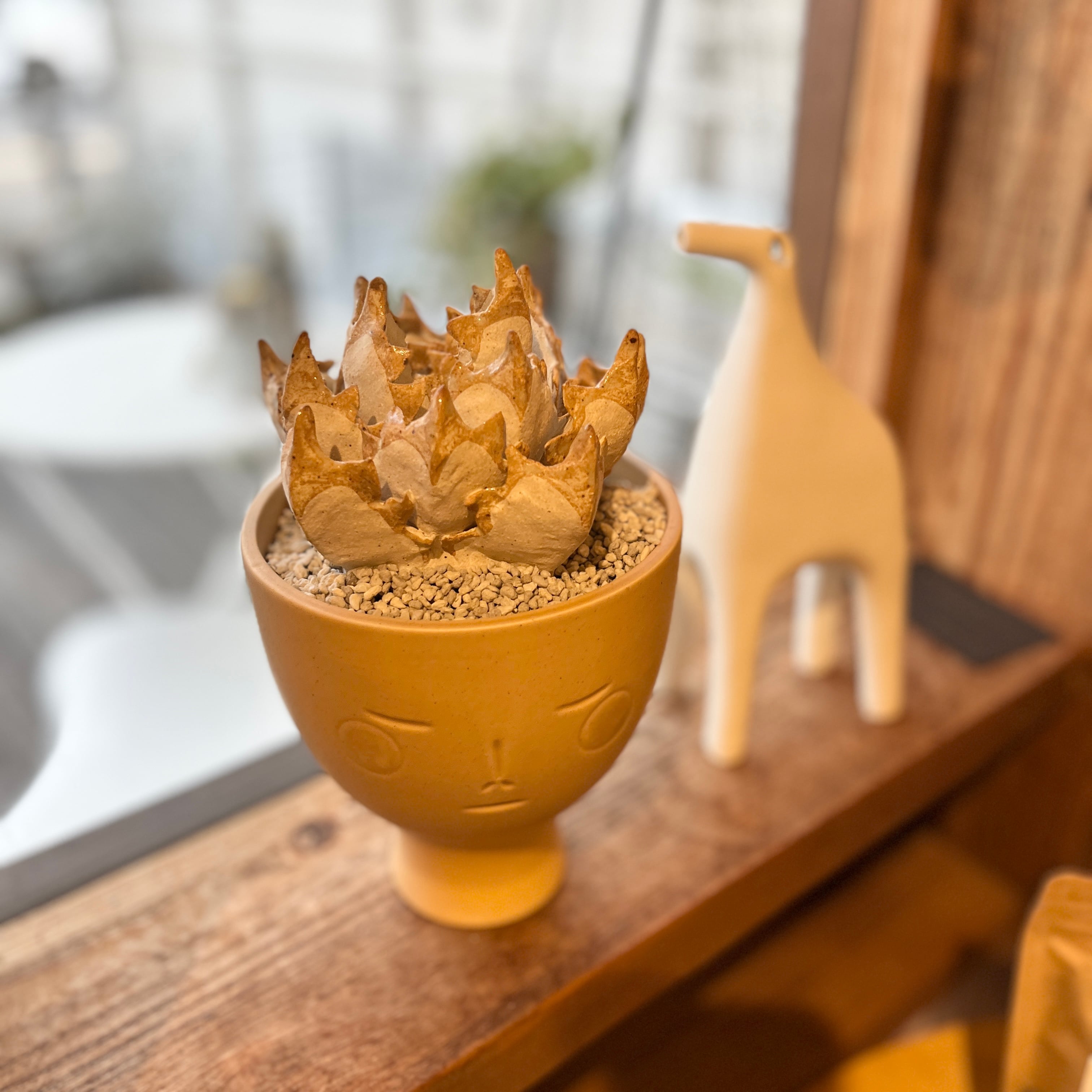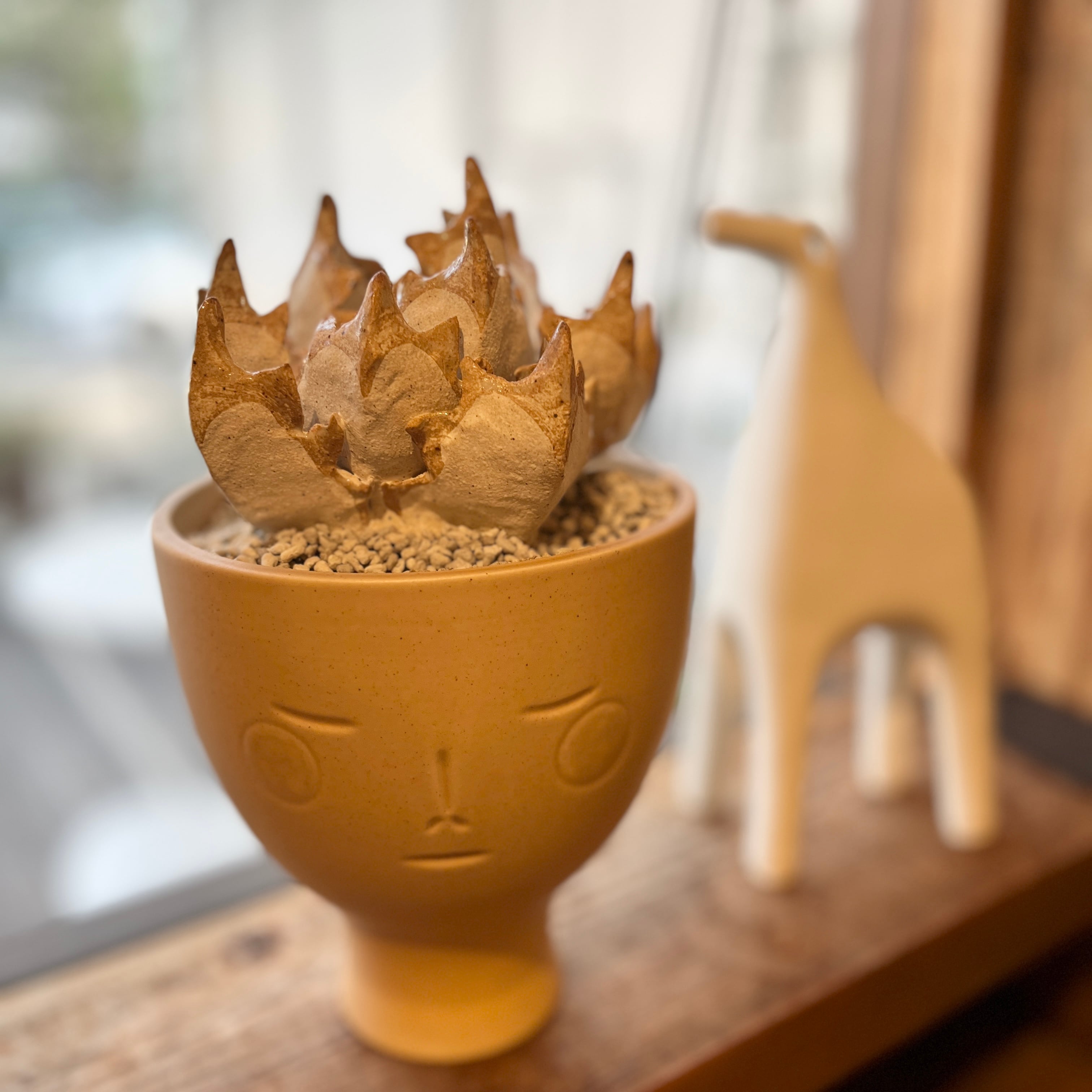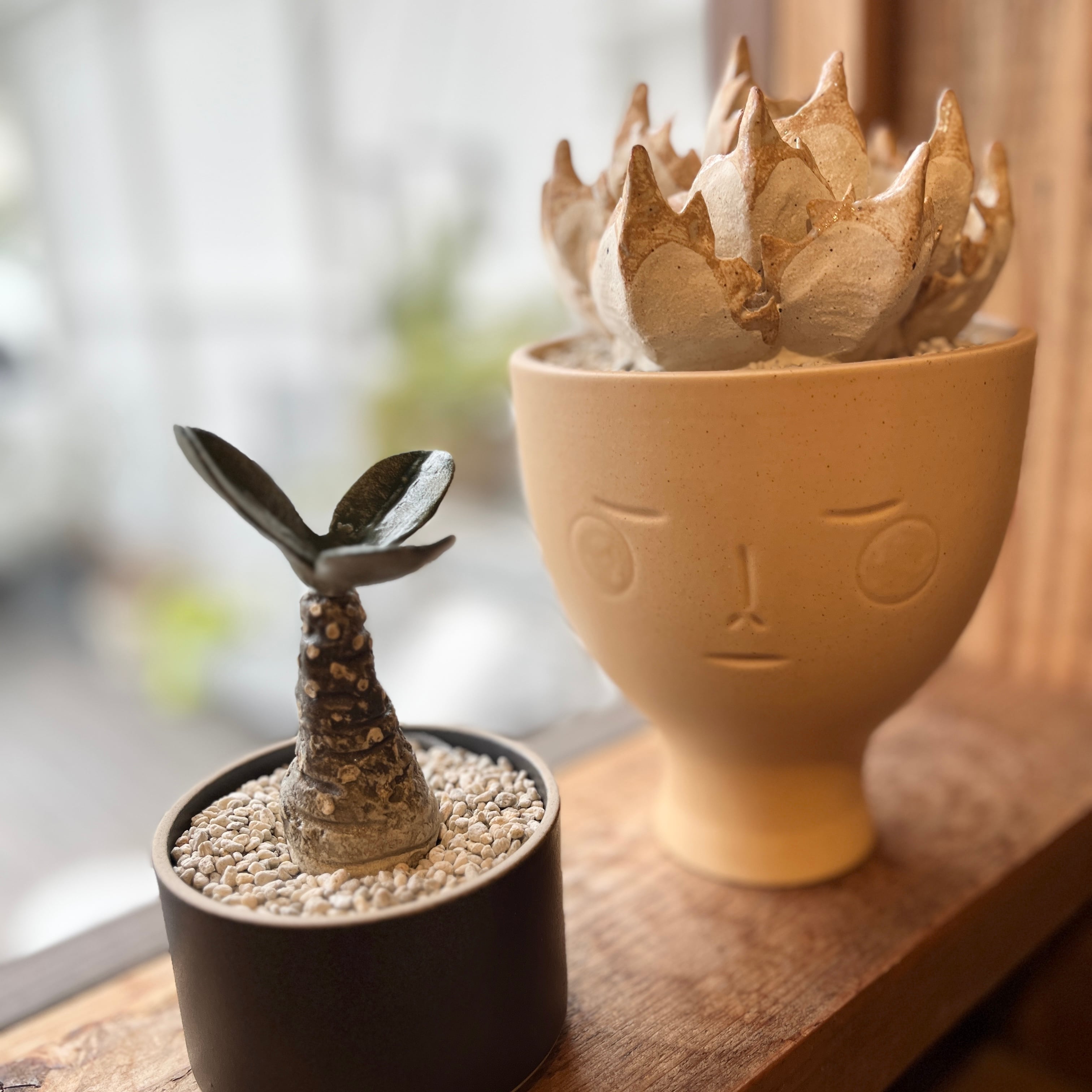 本物のディティールを再現しつつ、デフォルメも加えながらインテリアオブジェとして映えるように工夫しながら、制作されています。植物をそのまま模倣するのではなく、素材である土や釉薬の性質を生かしたアート性の高い仕上がりなるよう、細かいところにまでこだわりつつ、遊び心も加わった植物オブジェです。