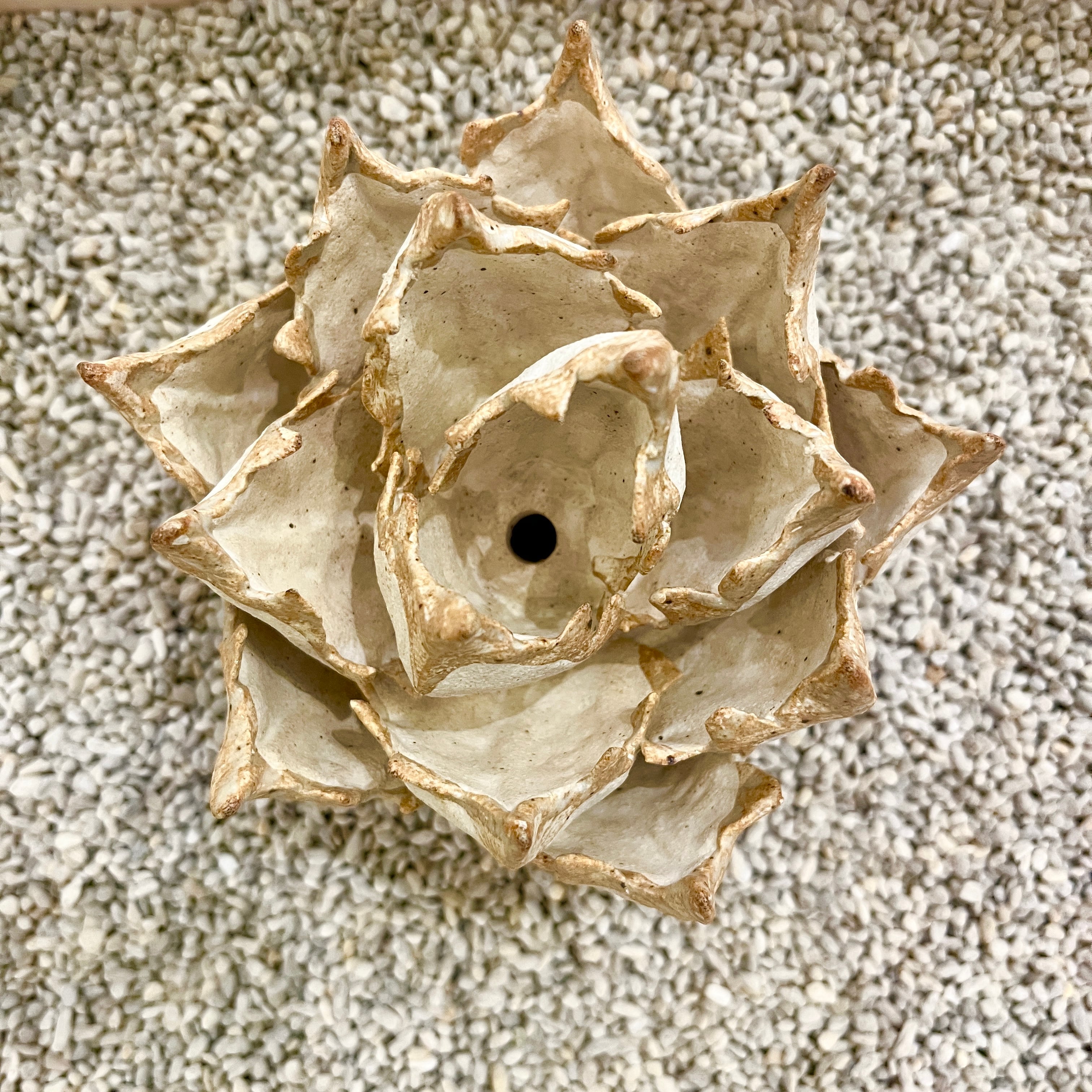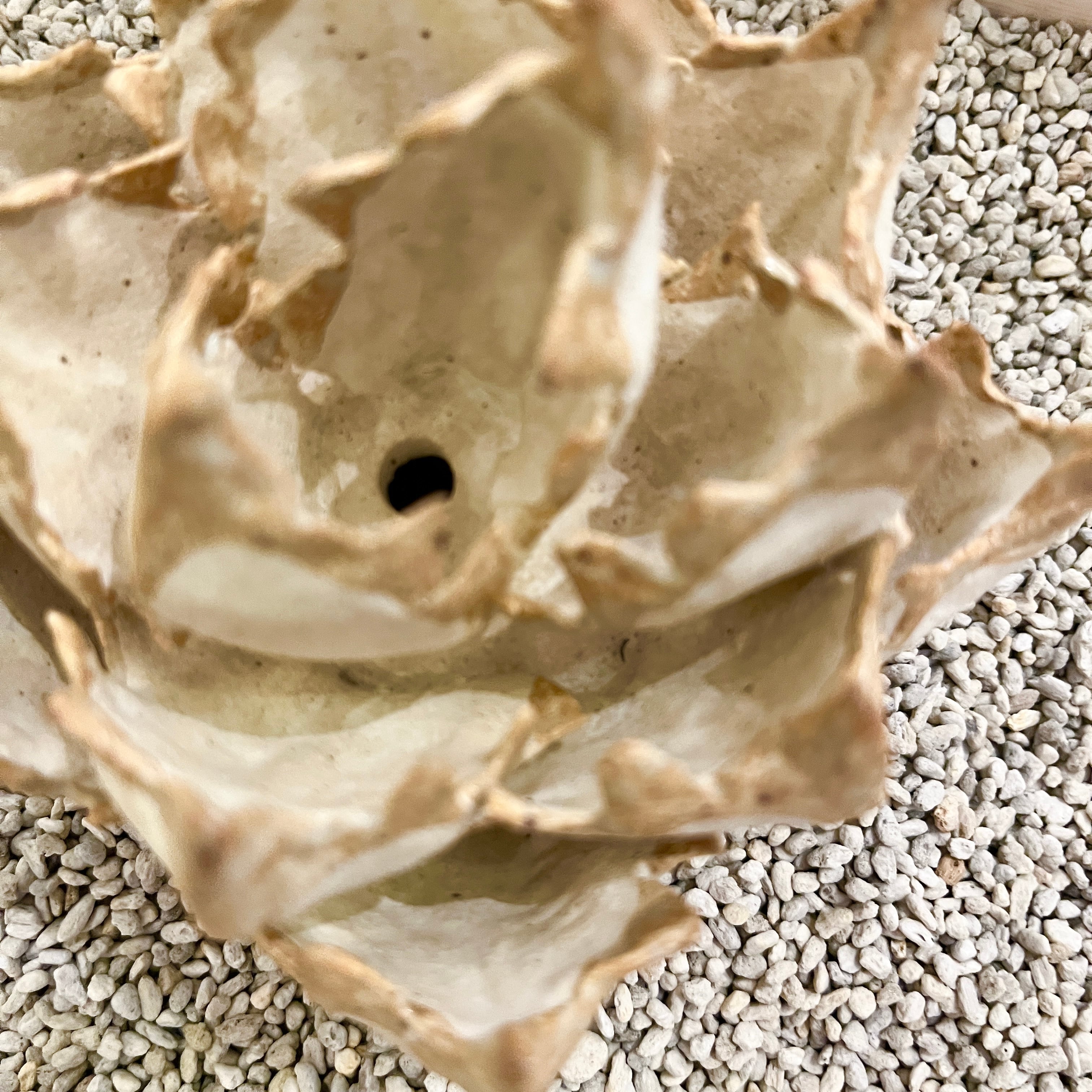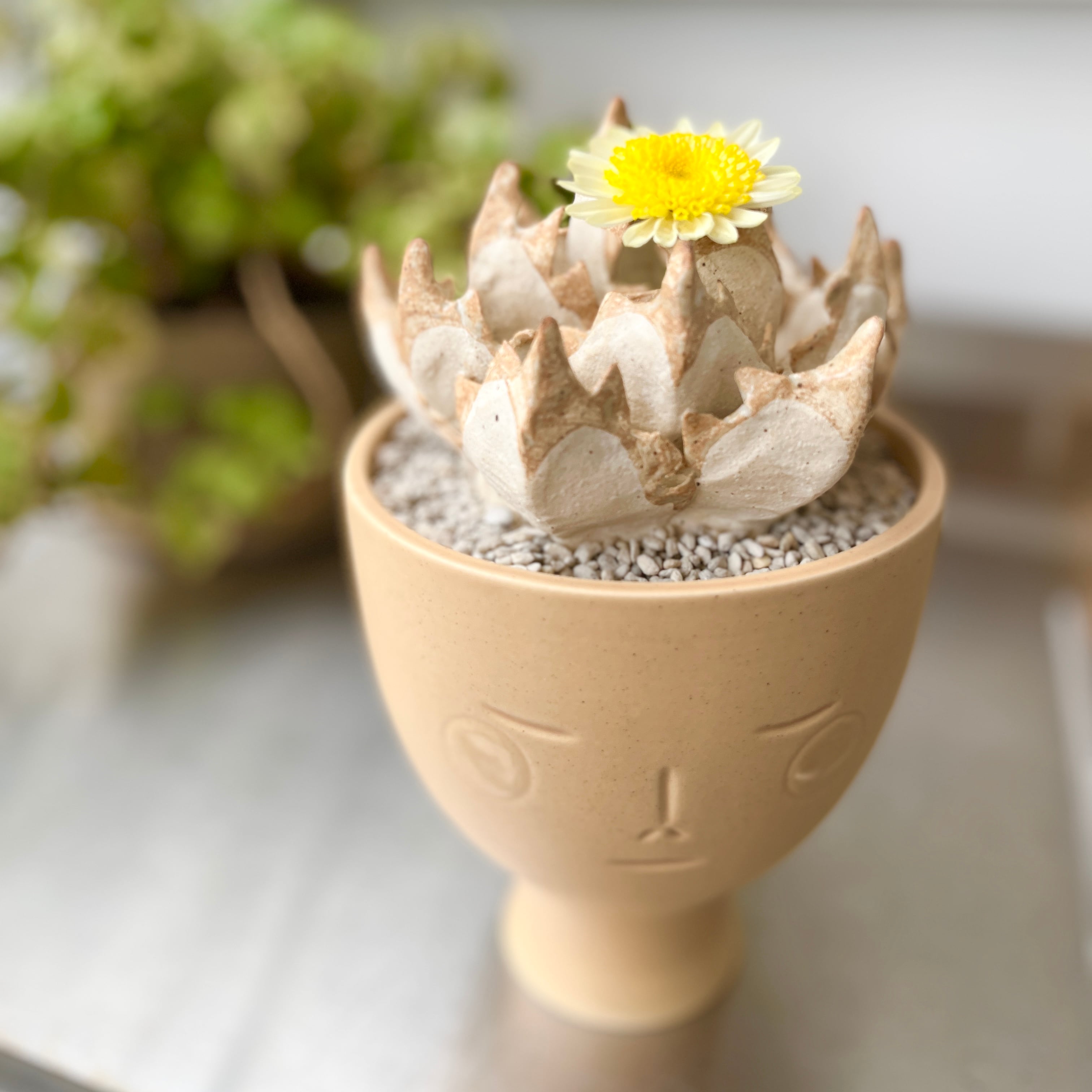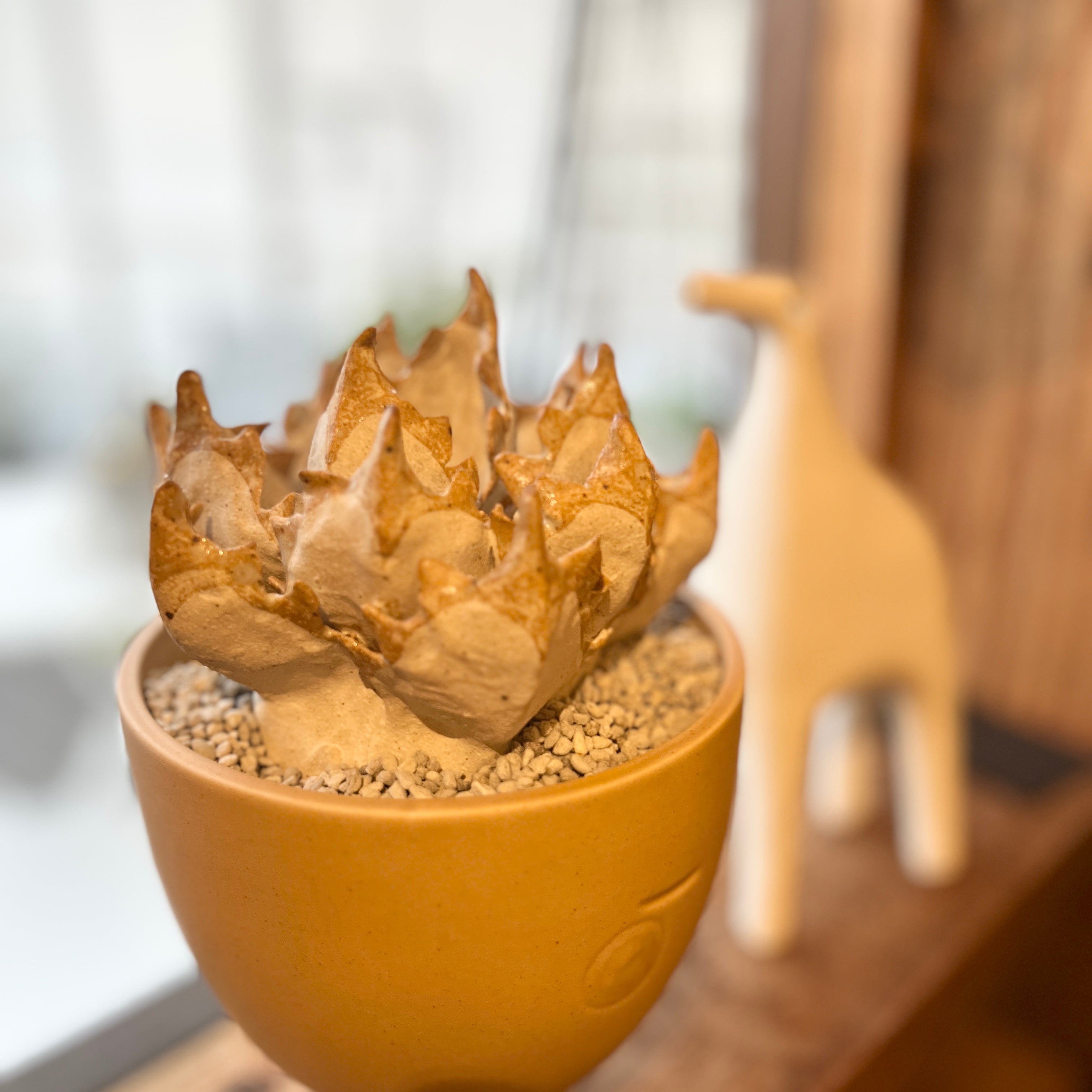 本物のディティールを再現しつつ、デフォルメも加えながらインテリアオブジェとして映えるように工夫しながら、制作されています。植物をそのまま模倣するのではなく、素材である土や釉薬の性質を生かしたアート性の高い仕上がりなるよう、細かいところにまでこだわりつつ、遊び心も加わった植物オブジェです。