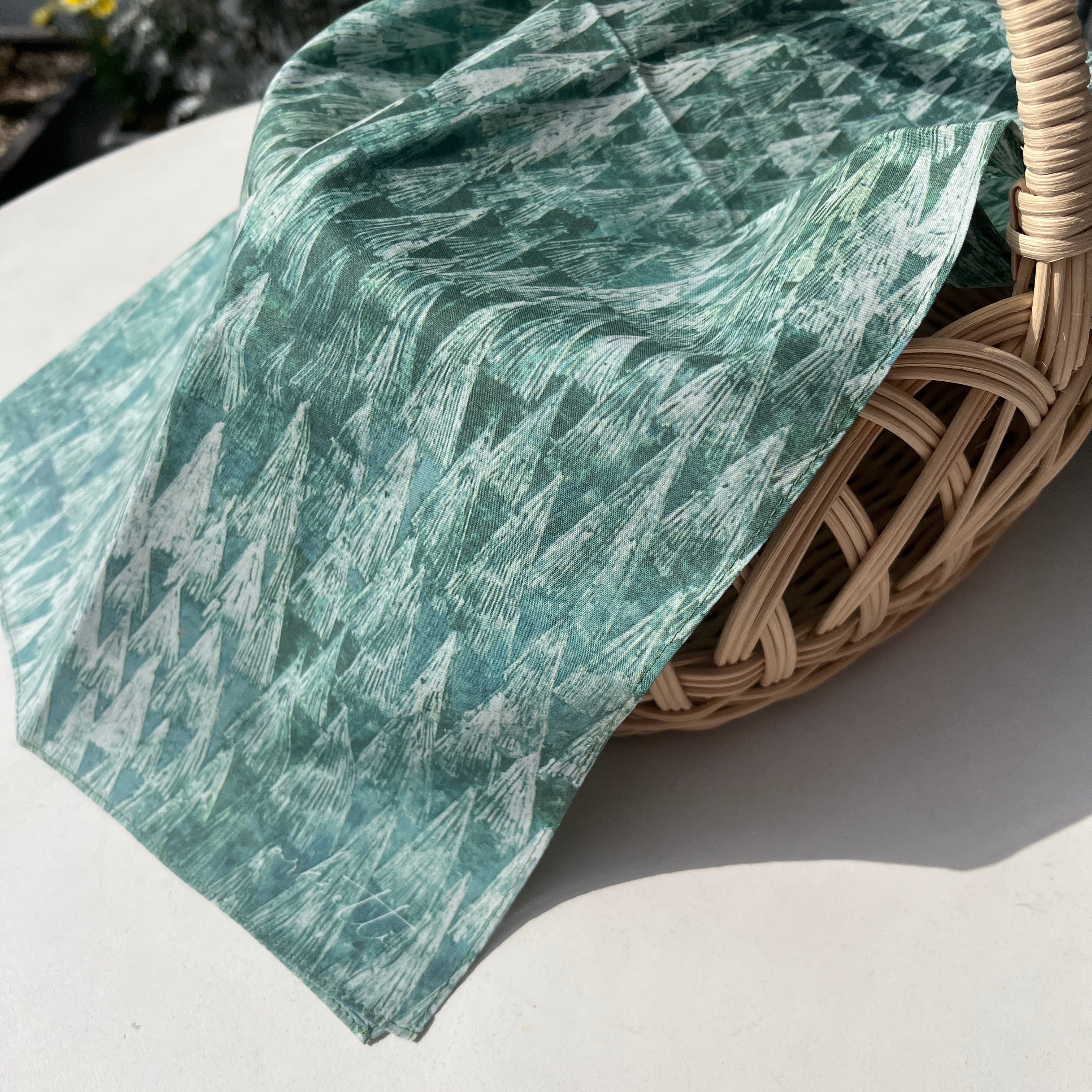 フィンランドの深い森をモチーフとした大判サイズのプリントハンカチです。
