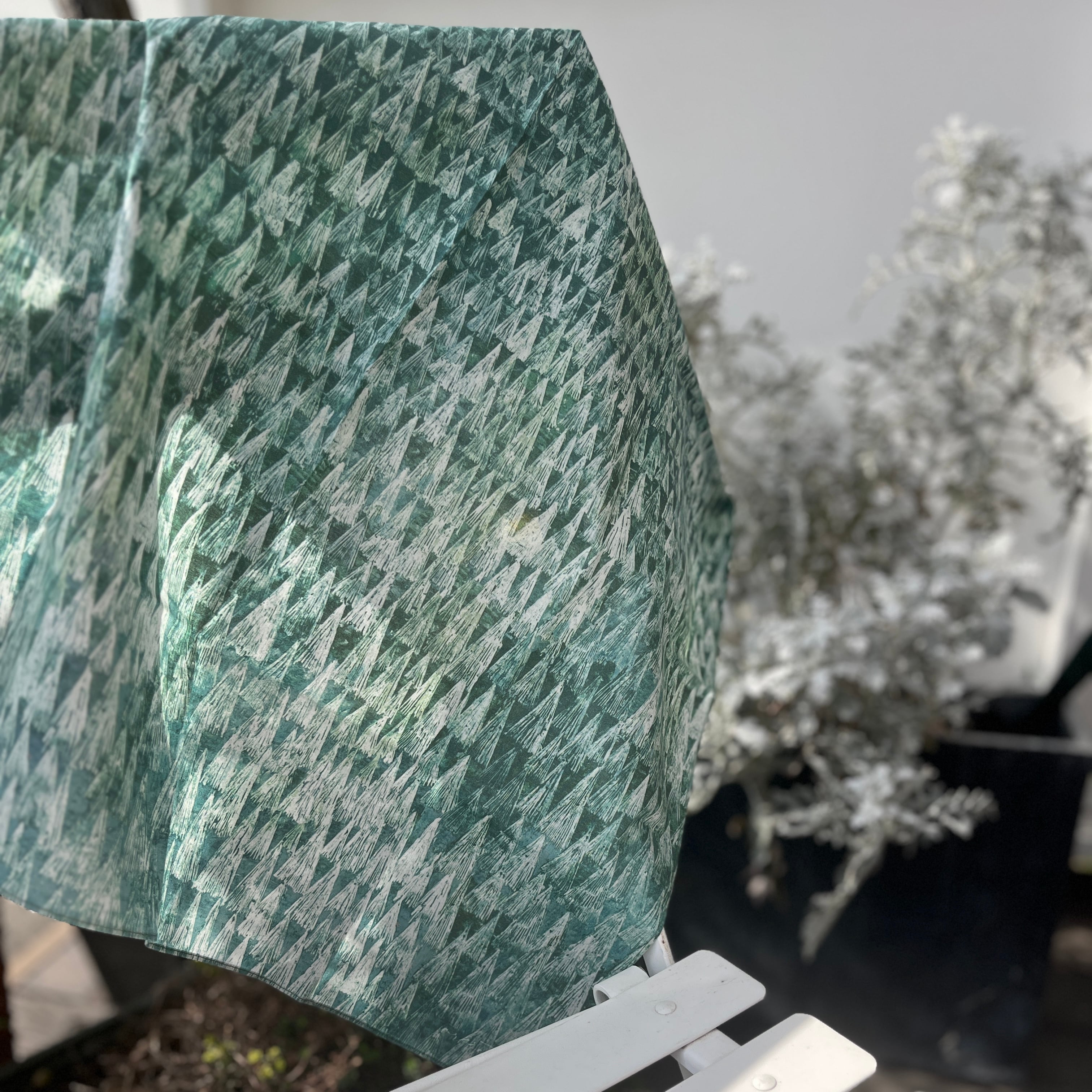 深みのあるグリーンのグラデーションが美しく、どの部分で折りたたんでも息をのむほどで美しい風景が広がります。