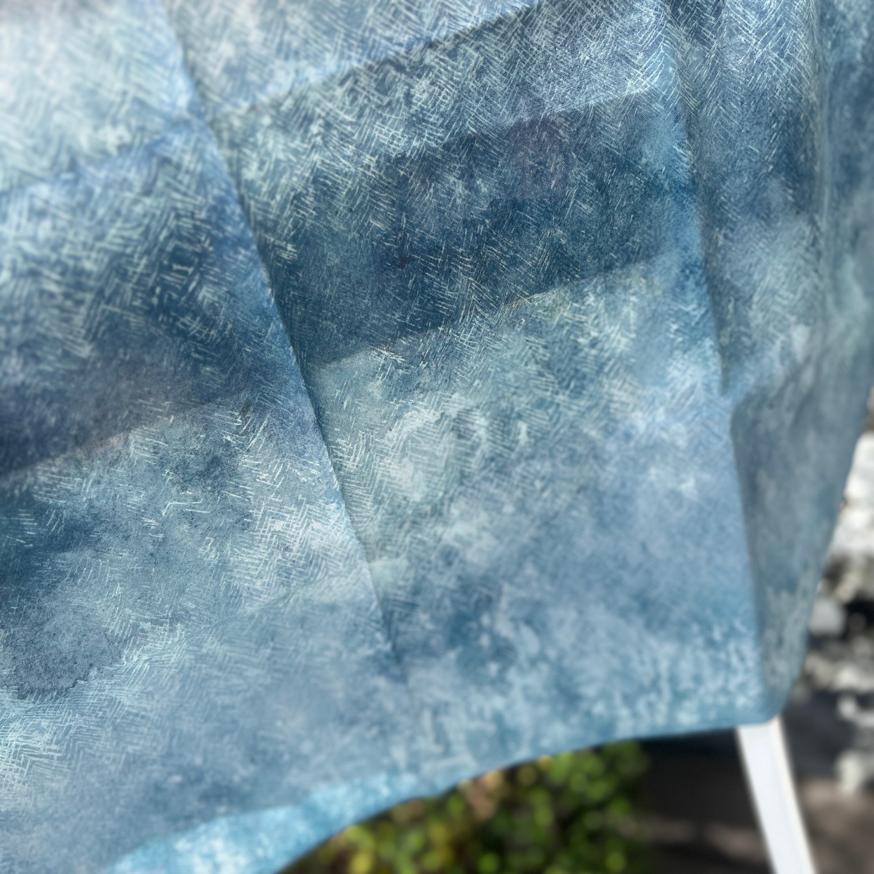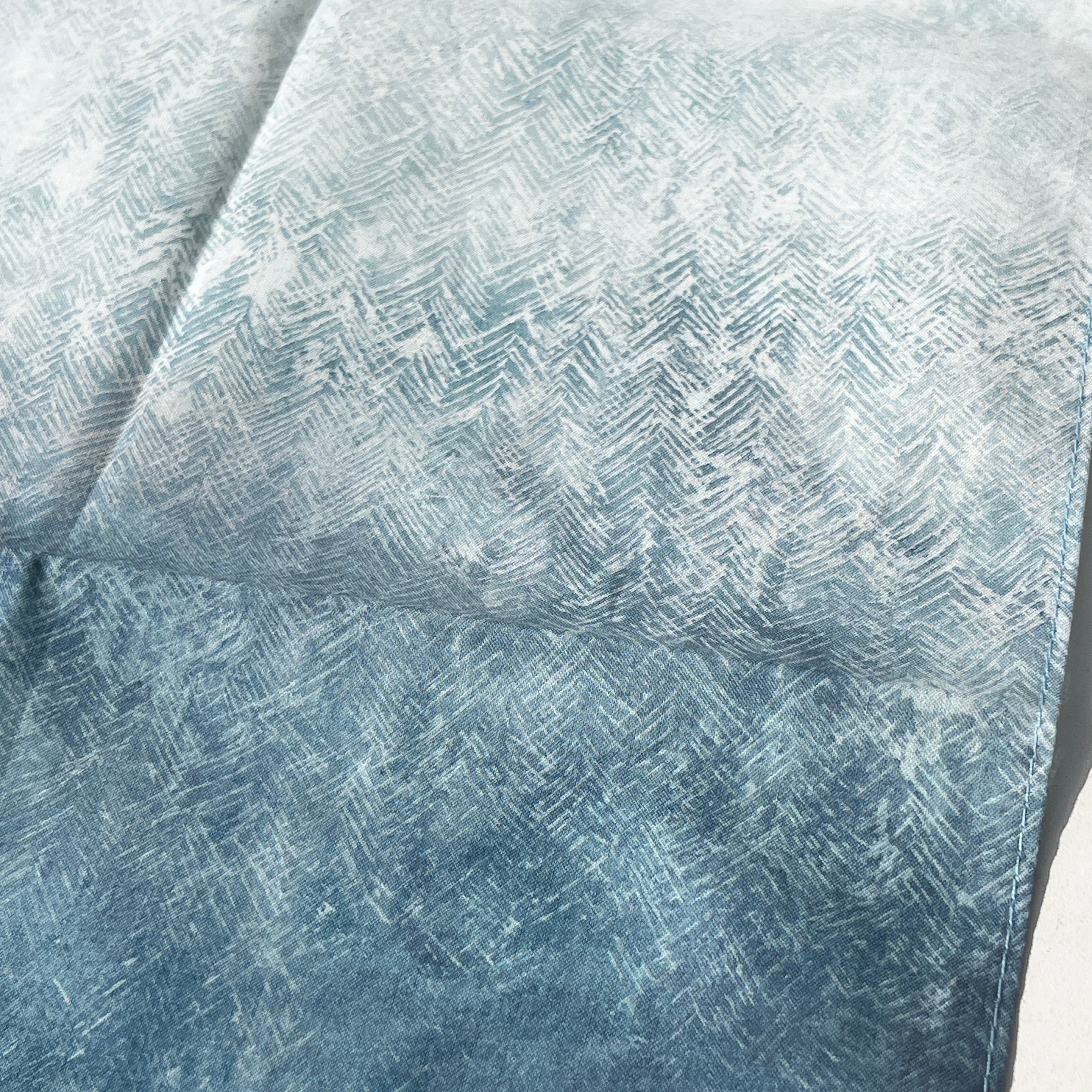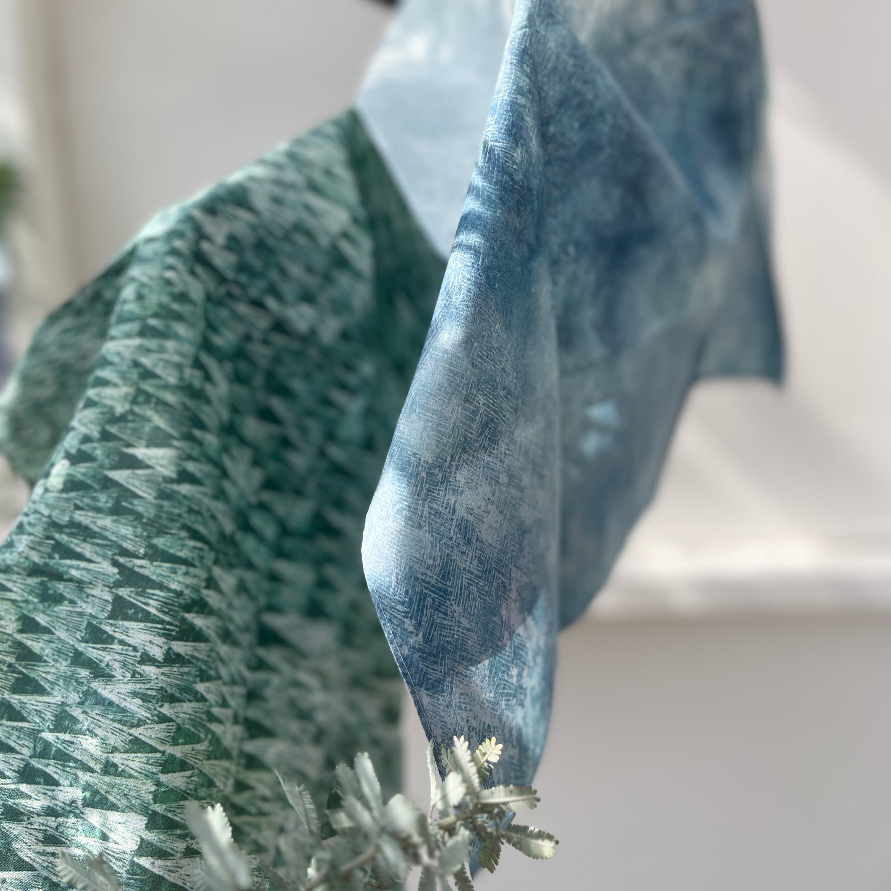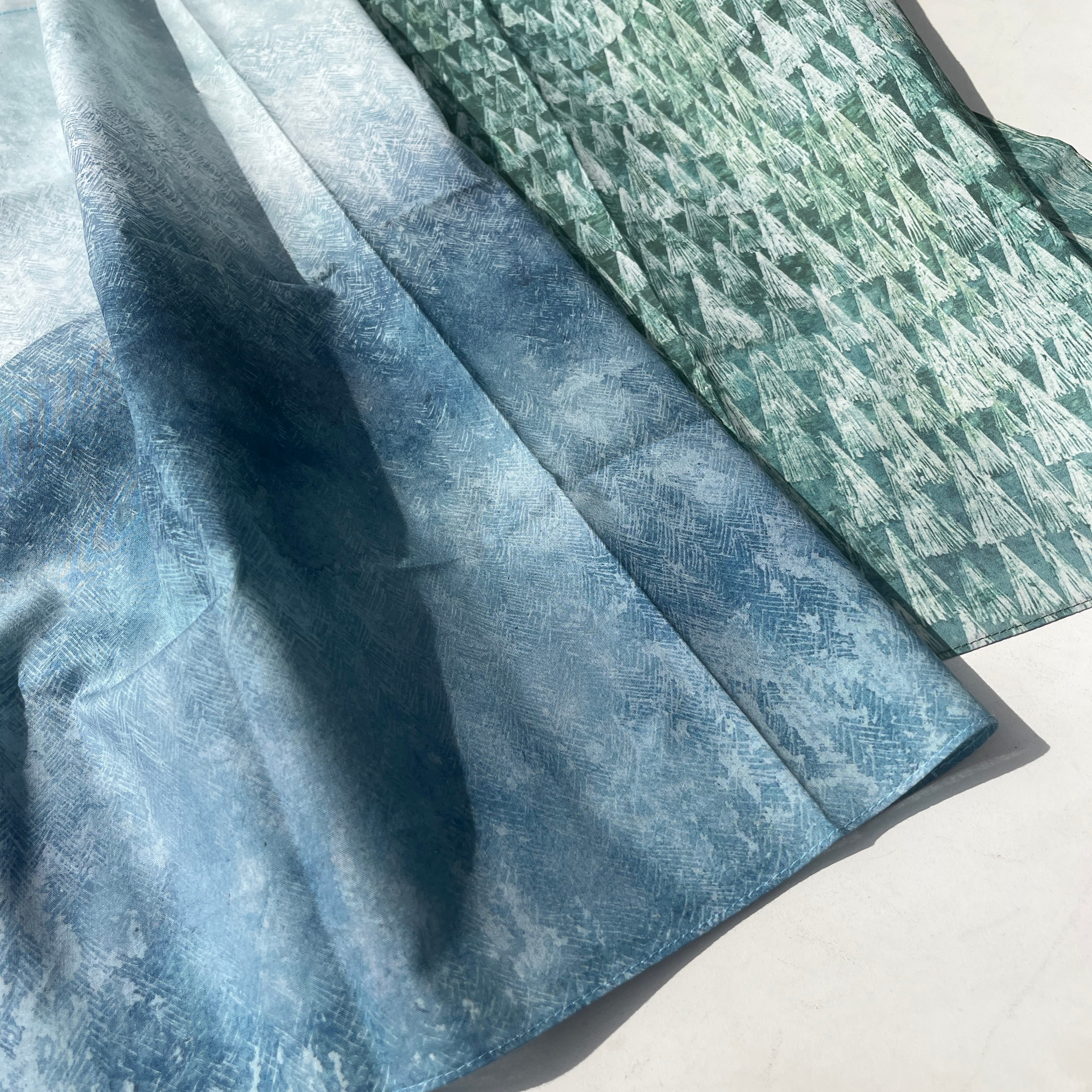 深いブルーグレーの森から、光が差し込んで輝く森の色のグラデーションが美しく、どの部分で折りたたんでも息をのむほどで美しい風景が広がります。