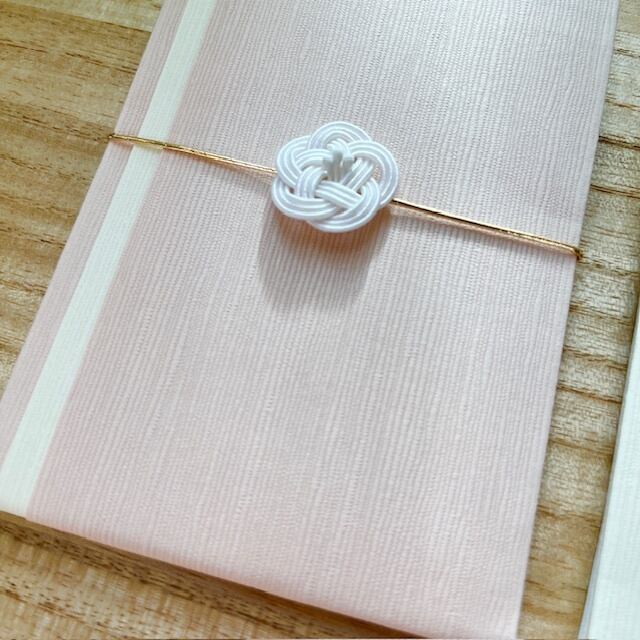 立体感のあるオフホワイトと桃色の台紙を使用し、梅結びをあしらい可愛らしさと大人っぽさを兼ね備えた上品なカラーのポチ袋です。