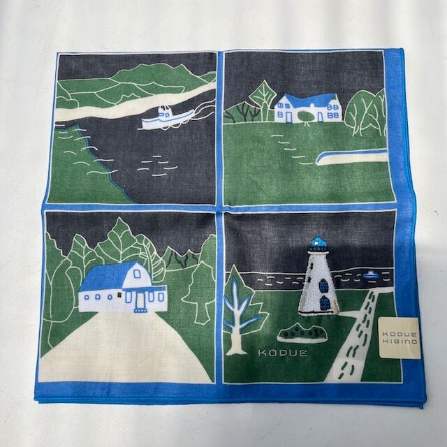 ひびのこづえ ハンカチ 風景 ブルー 刺しゅう入り