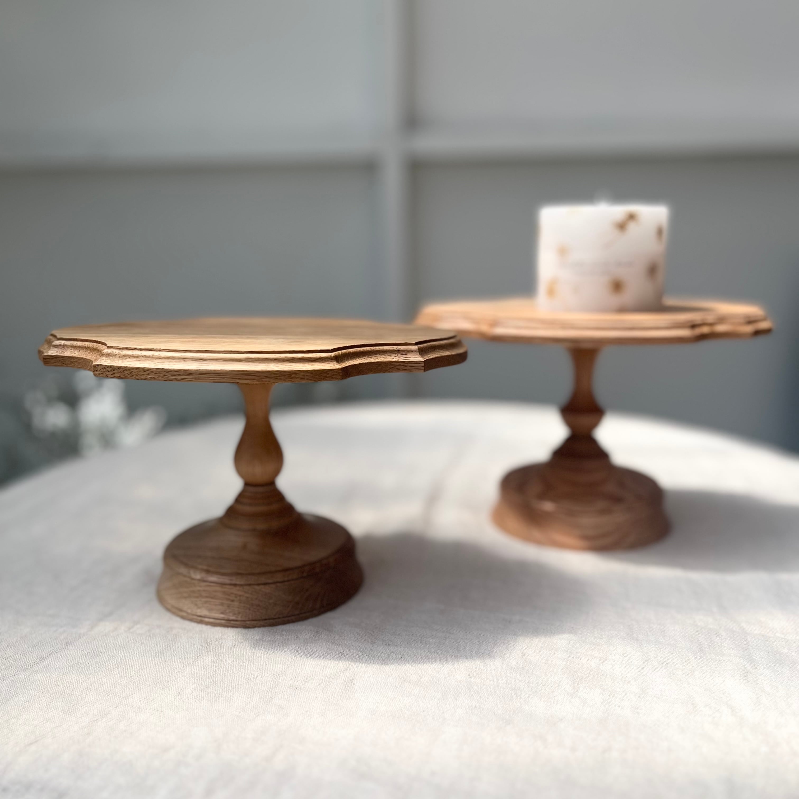 久銘 変形コンポート オーク ケーキスタンド