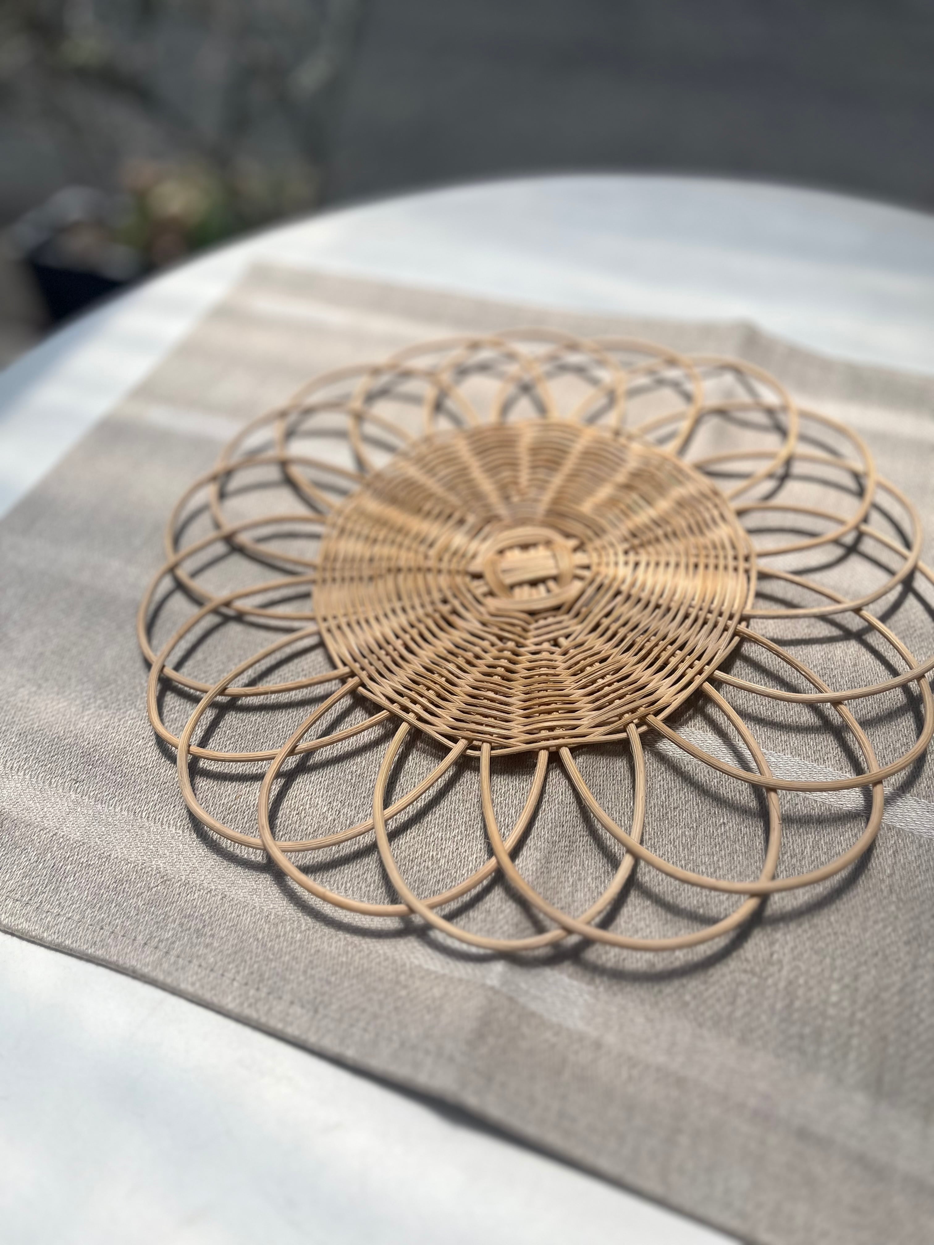 自然素材であるラタンを使用し、丁寧に編まれたトレイを、テーブルコーディネートのアクセントにいかがですか。使い勝手の良いサイズ感で、お気に入りの小物を飾ったり、壁に絵のように飾っていただいても可愛いと思います。